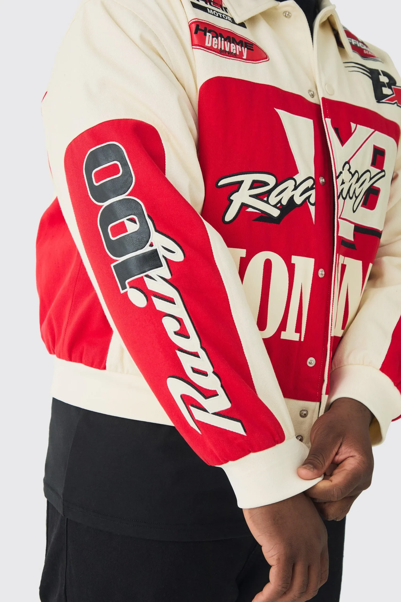 100% polyester. Model is 6″1 and wears a 3XL.