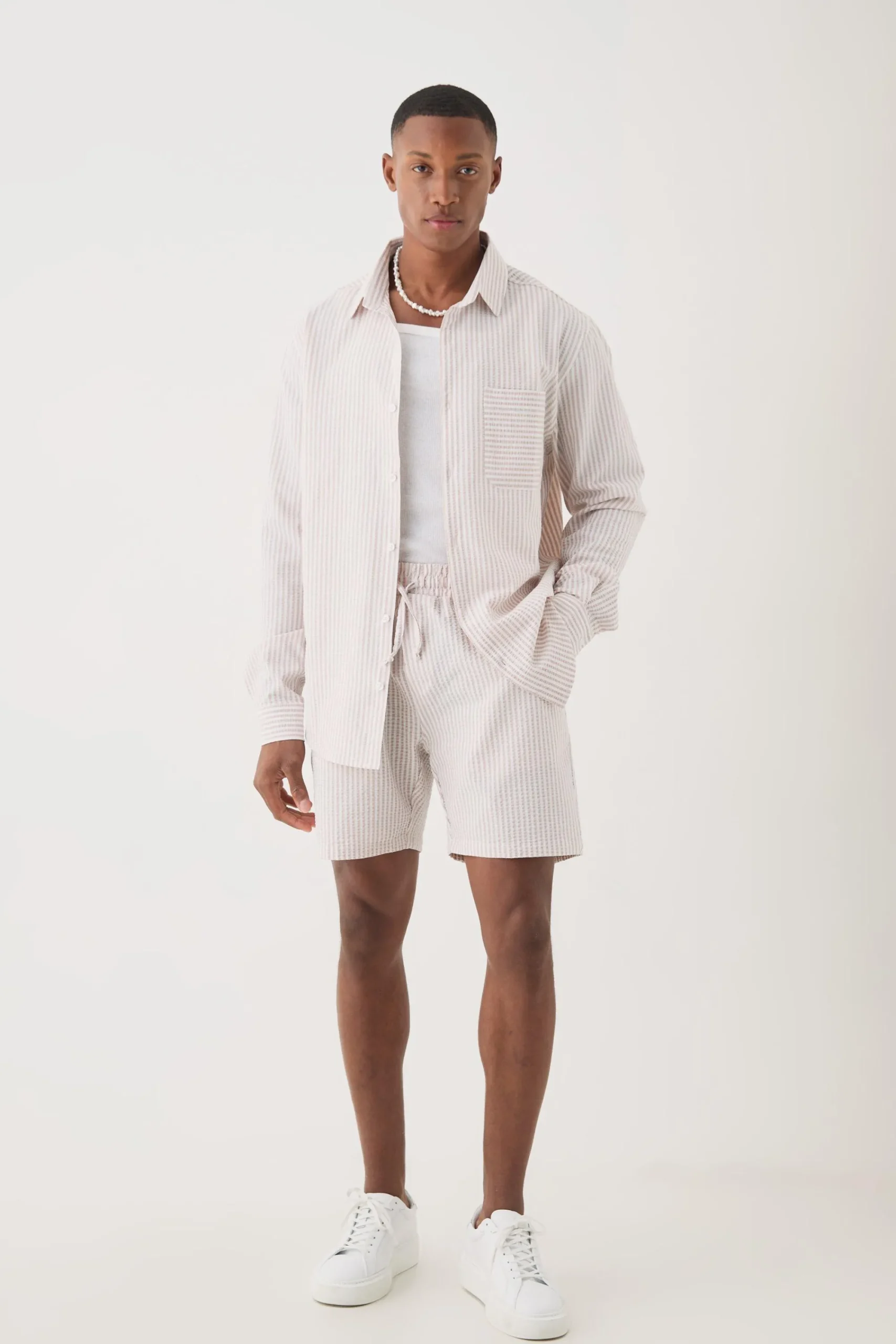 Did someone say garden party? Make an entrance and turn heads with a bold printed matched with a and statement , perfect for your mates back patio or the beachside bar on your summer getaway. Prefer to blend in? How about a soft grey or beige with a white tee and loafers, or khaki over a black tee and a dog tag pendant. Whatever your vibe, we’ve got you covered from the beach to the bars – and when summer’s over, swap the shorts for jeans or cargo pants or layer up with a contrasting bomber jacket – presto!