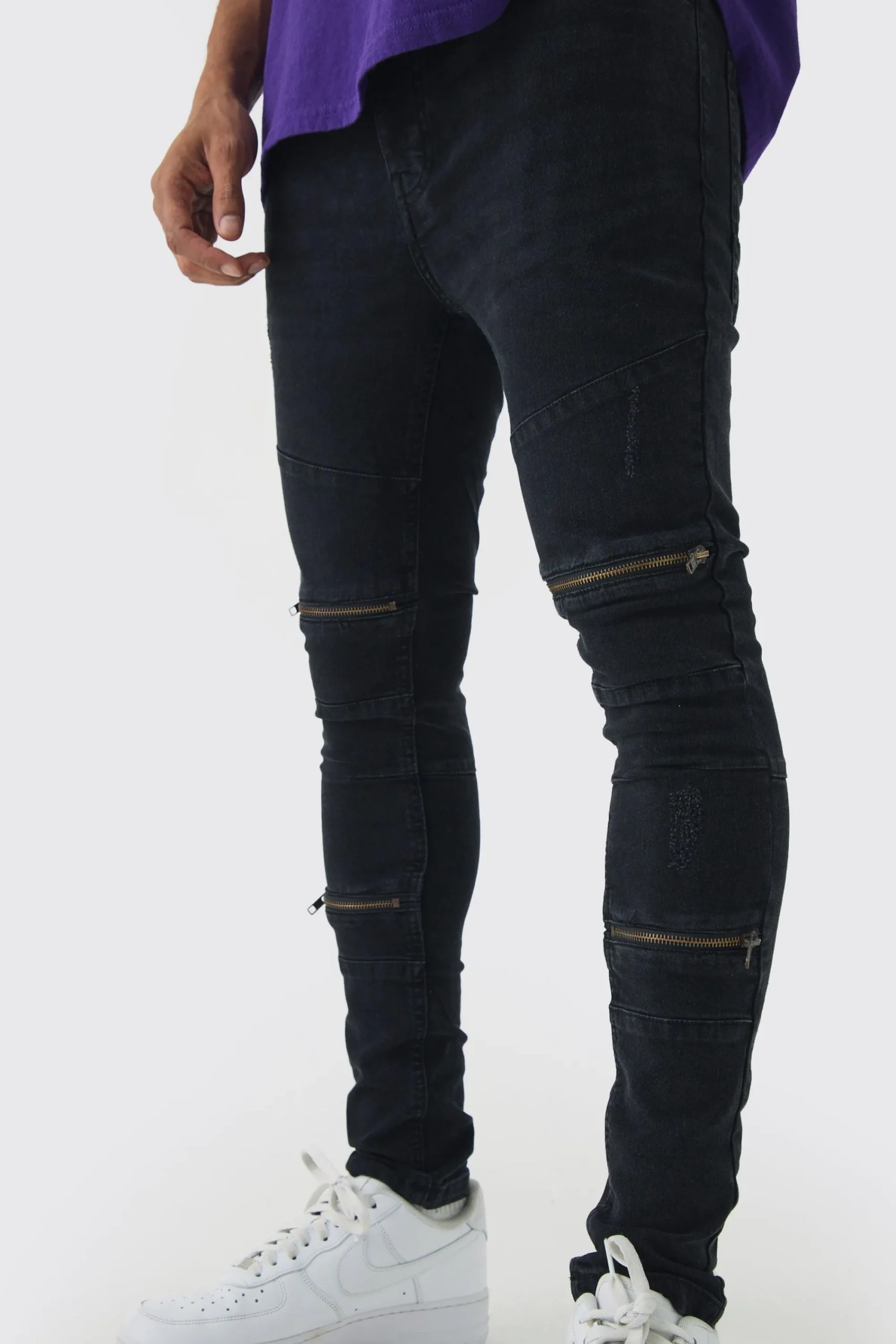 Unleash your fashion rebel with our edgy collection of men’s biker jeans. These jeans are not just a staple piece; they’re a statement. Made for the men that want to stand out they bring an unmissed flair to your wardrobe. The stretch material ensures ultimate style while securing you some serious style points. These are perfect for your next night out with the lads or your next date night that’s on the cards. Pair these biker jeans with a leather jacket and boots, or dress them down with a casual tee and for everyday wear. You don’t want to miss out on these jeans.