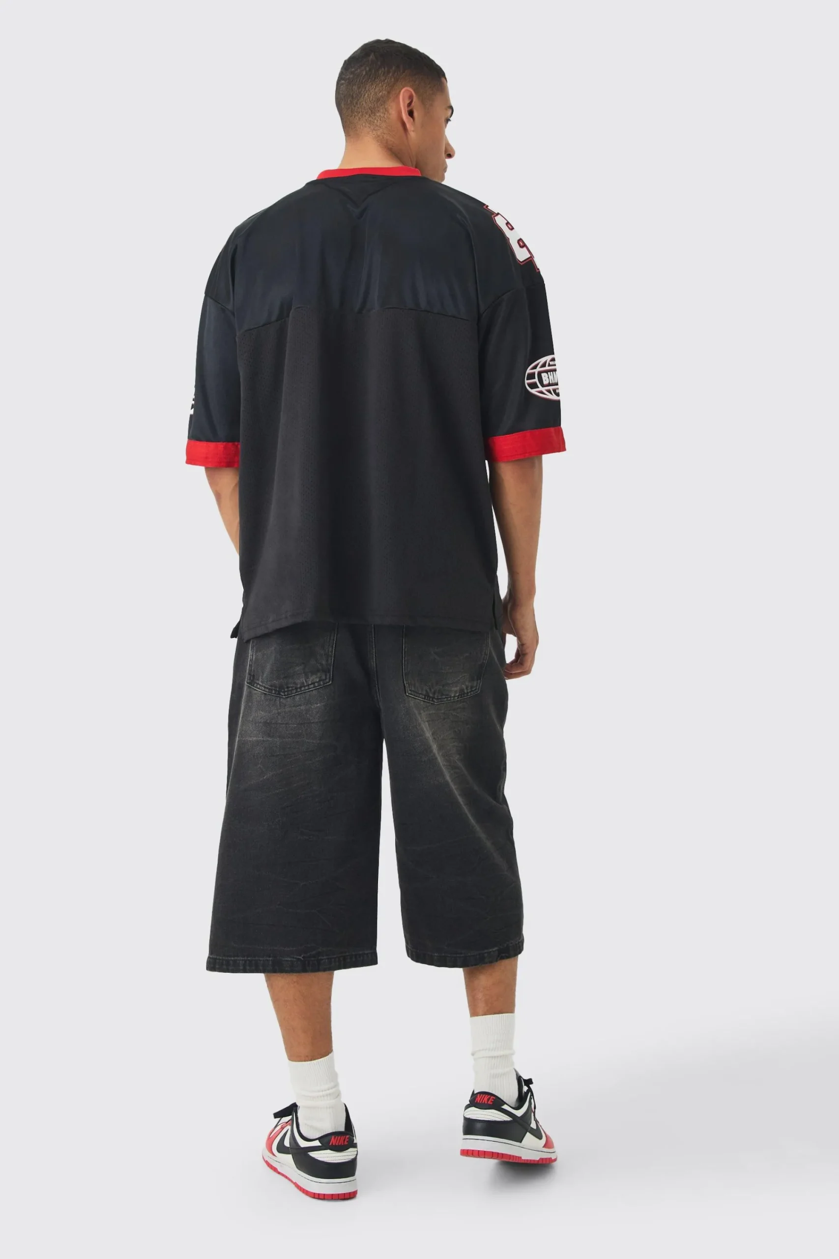 100% POLYESTER. Model is 6’1″ and wears a size M
