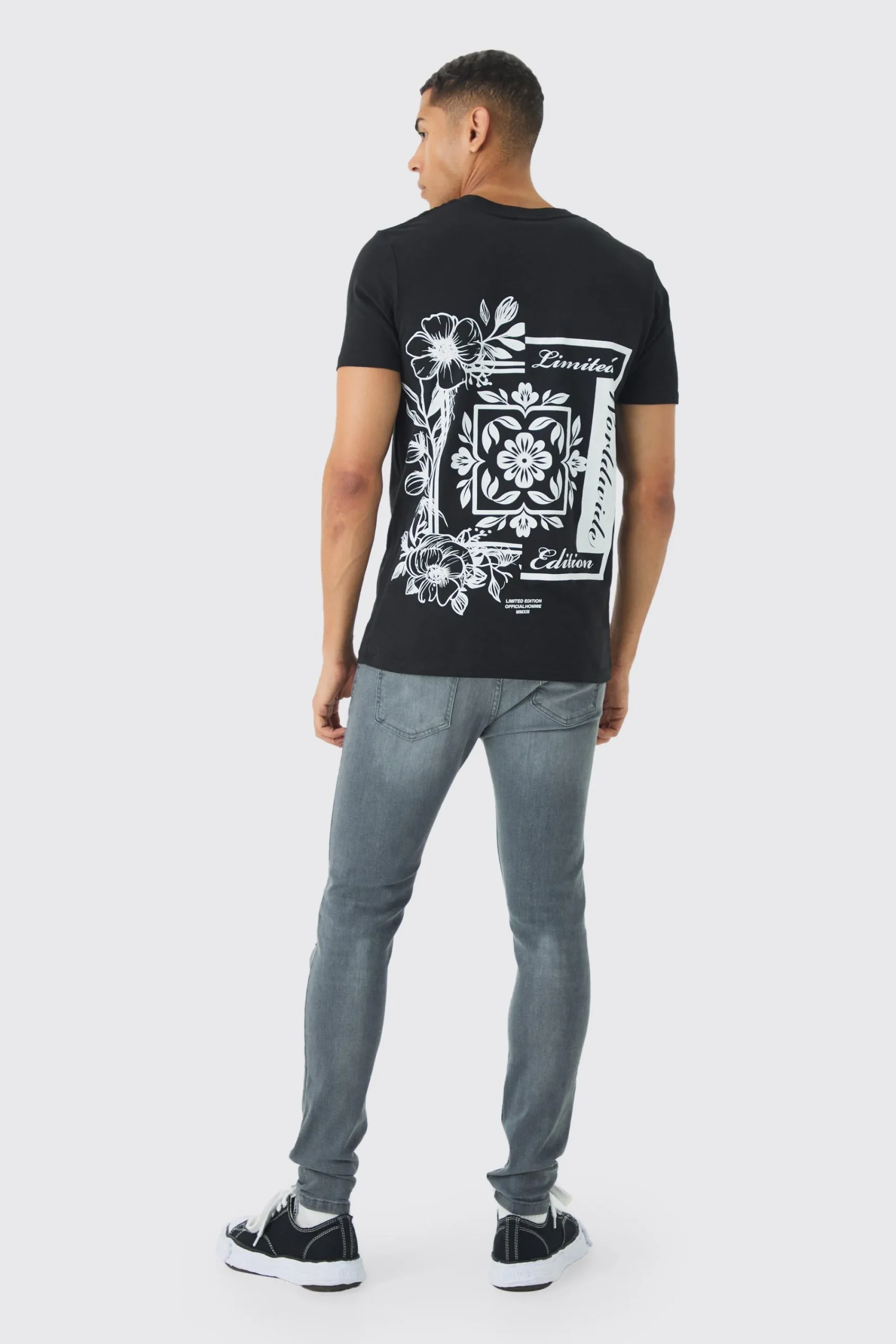 Slim Floral Back Print T-Shirt | UK^boohooMAN Clearance