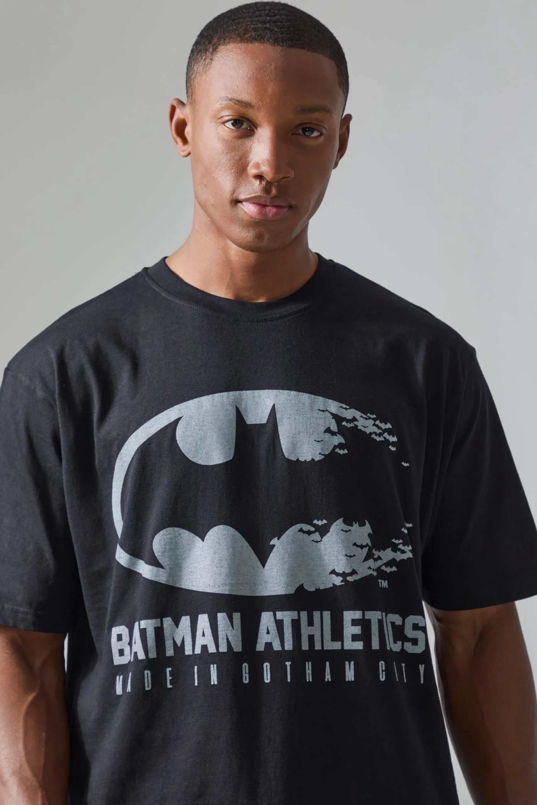 100% Cotton. Model is 6’1 and wears size M.
