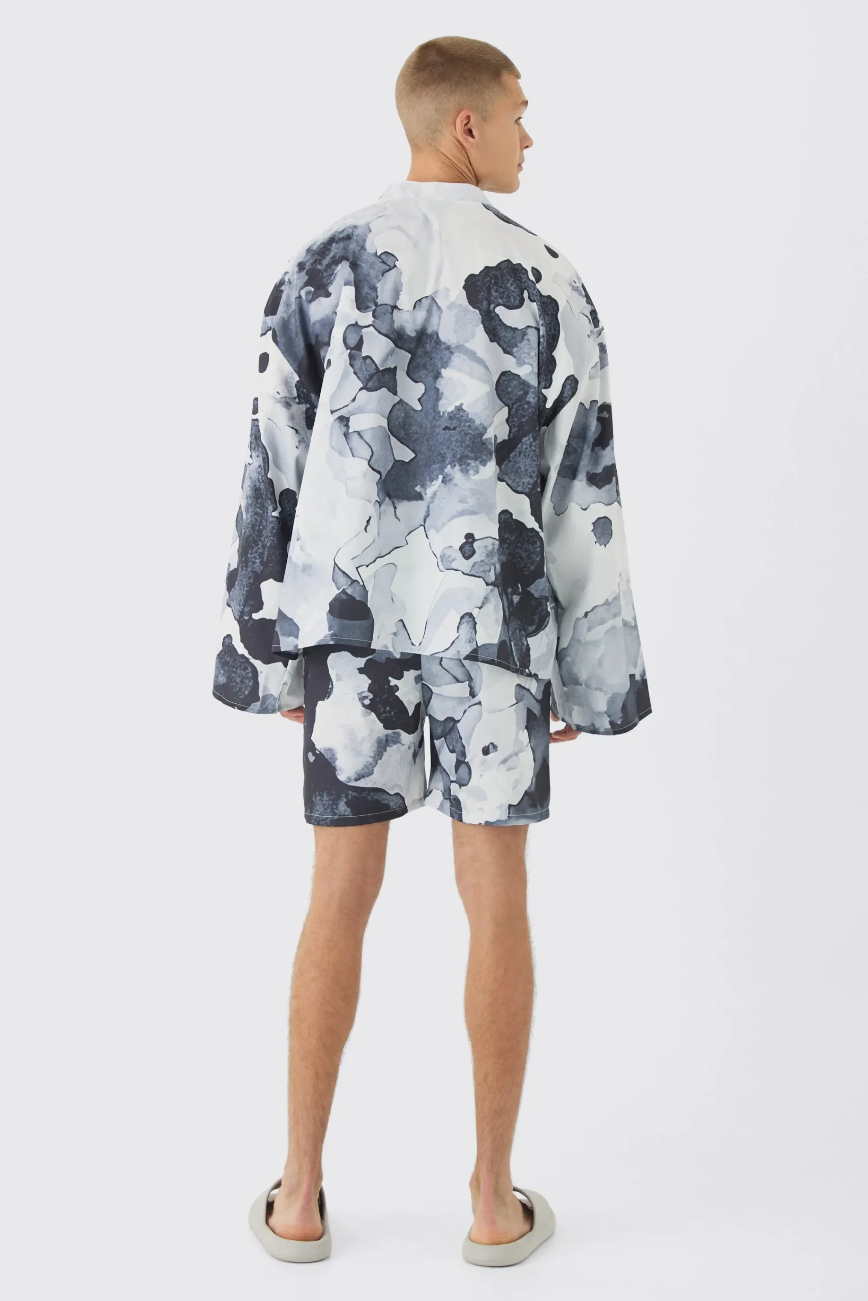 boohooMAN Abstract Print Kimono Shirt & Swim Short Set | UK| Sets & Co-Ords