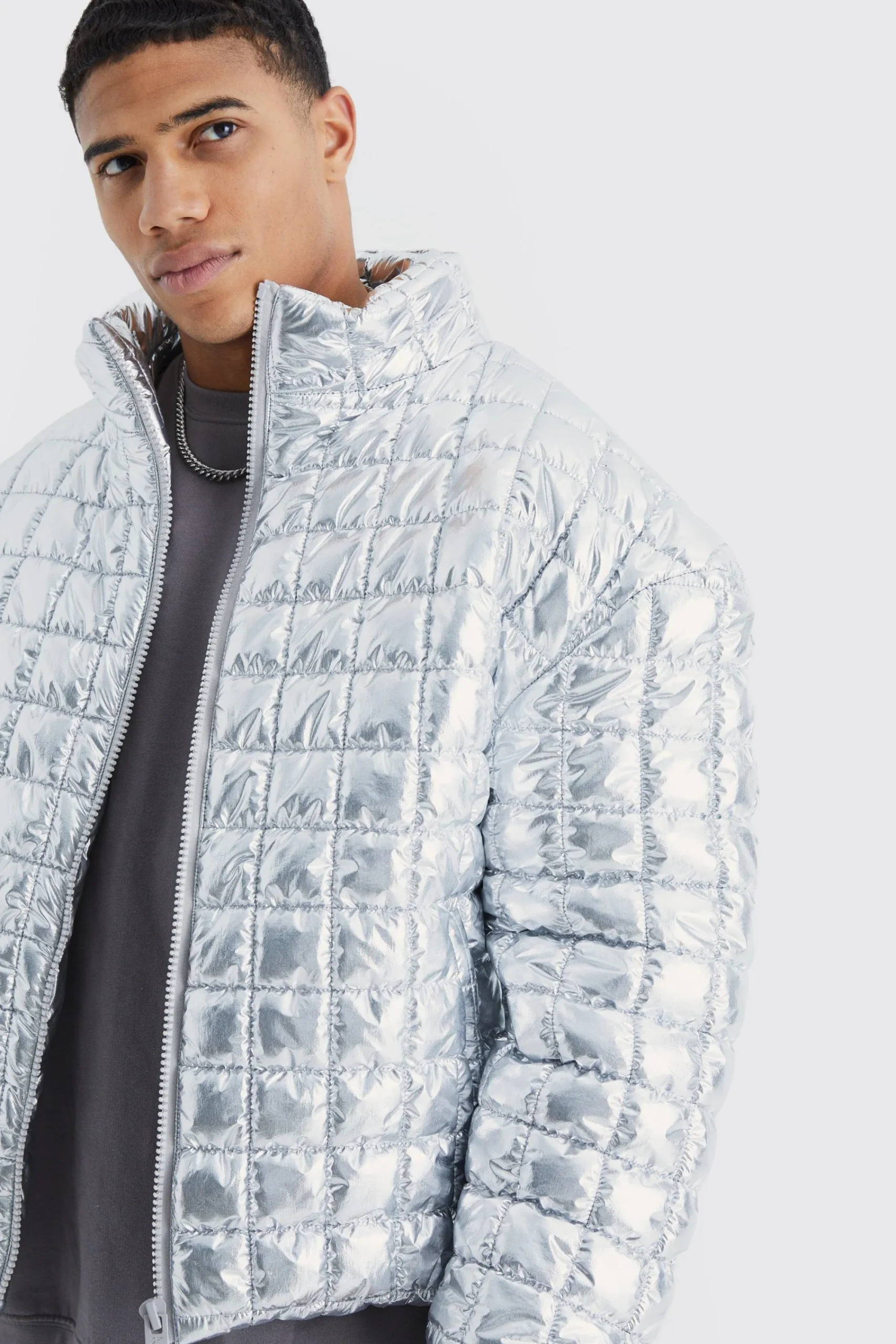 - Eye-catching metallic finish for a modern streetwear look