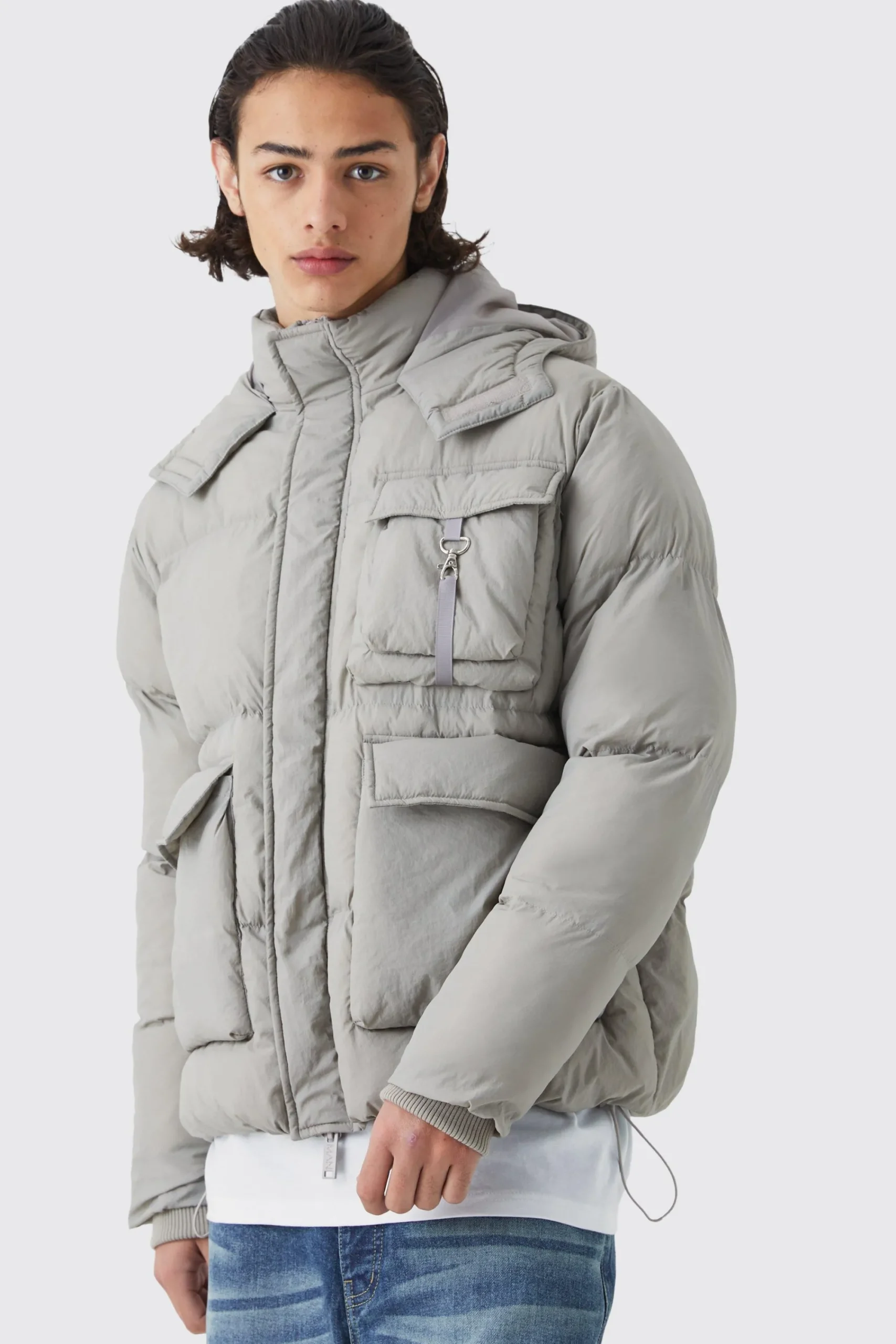 - Quilted parka with multiple utility pockets for a utilitarian look