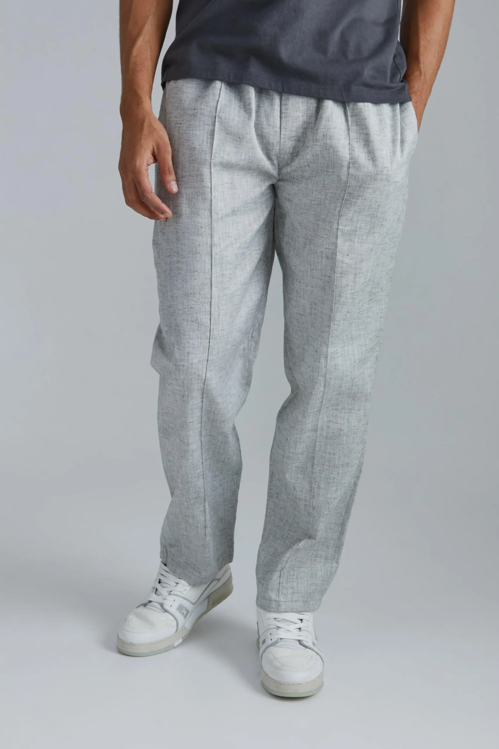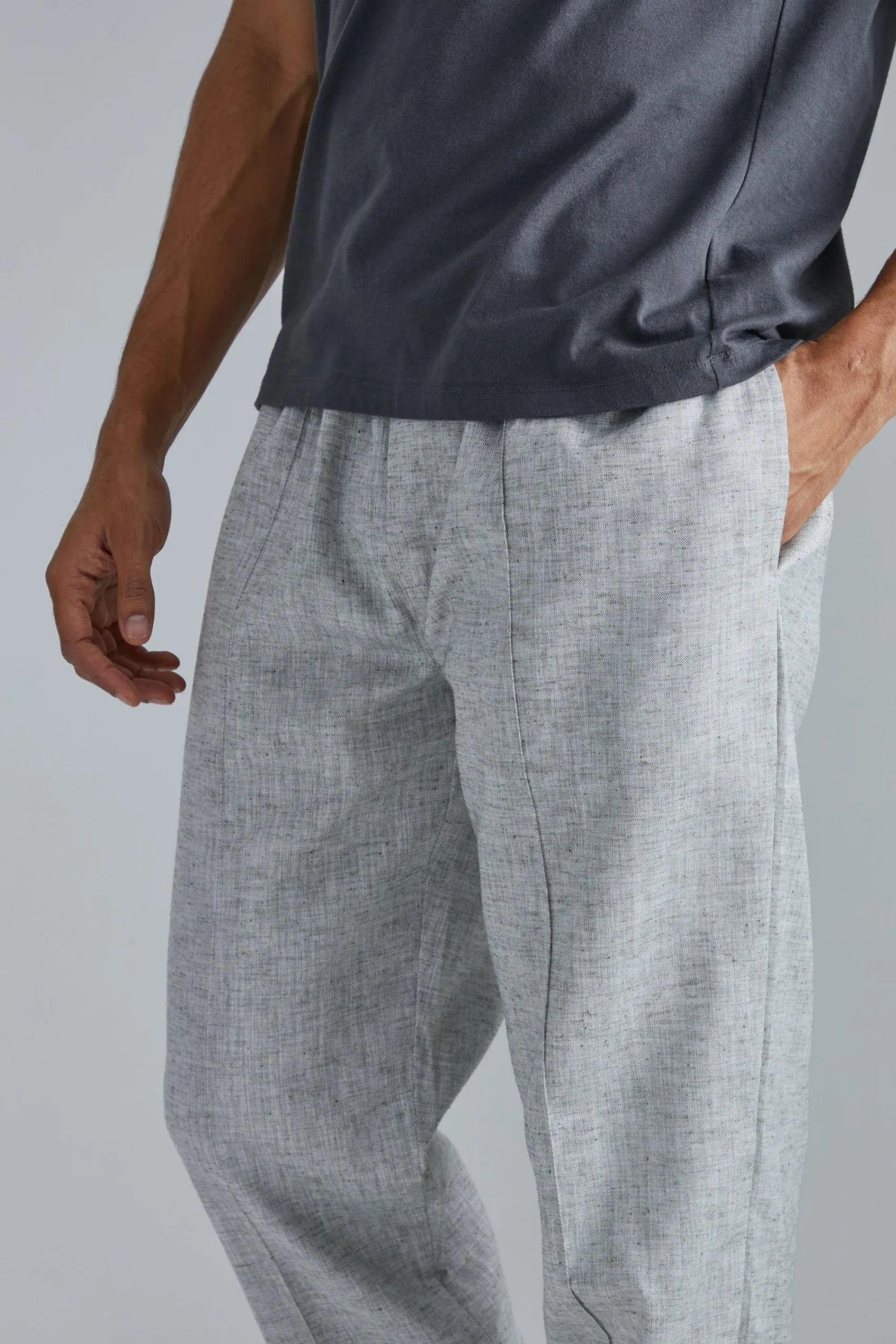 - Textured cotton fabric lends visual interest to a casual trouser