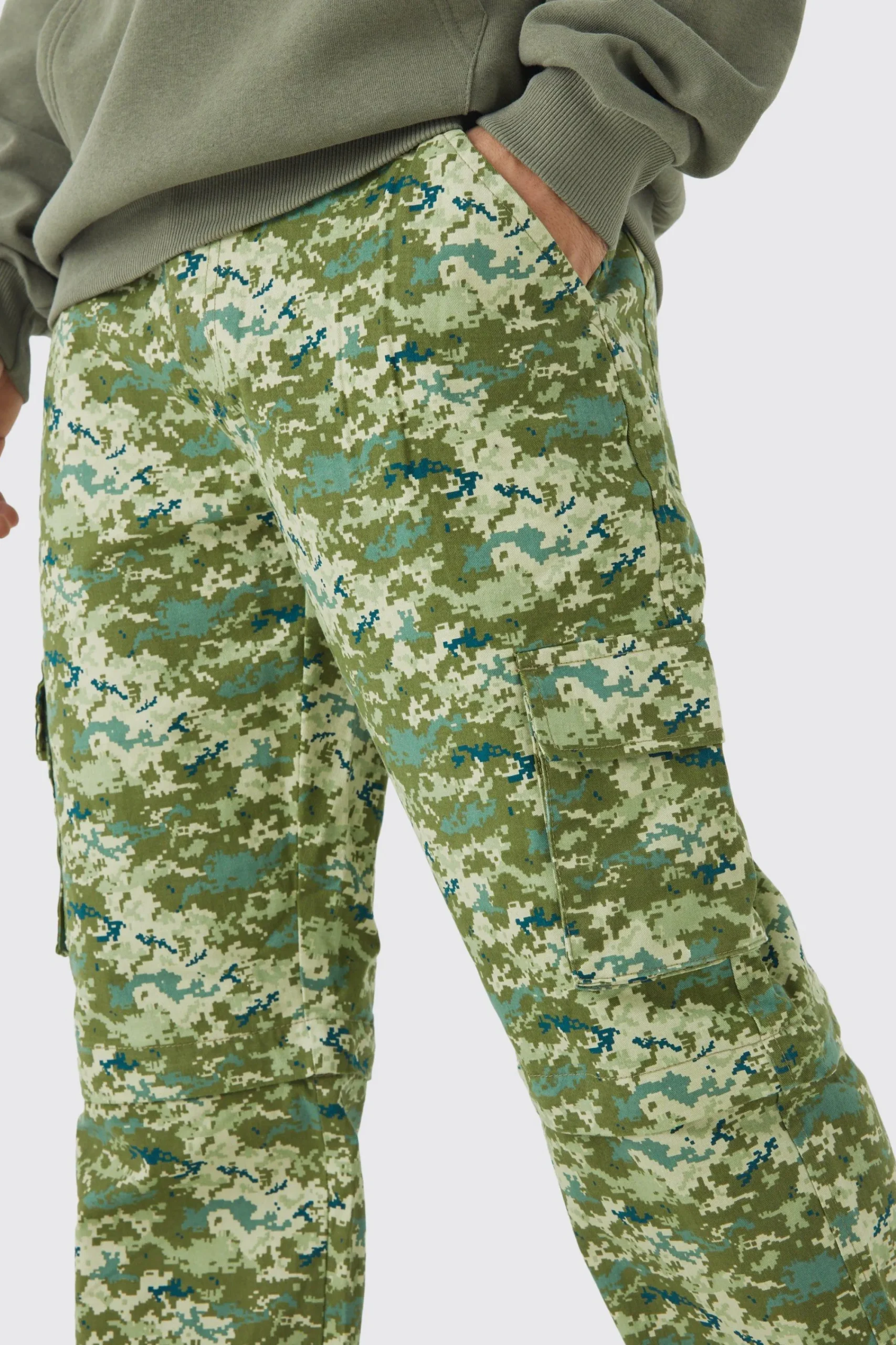 - Camo print and cargo styling effortlessly elevates casual outfits.