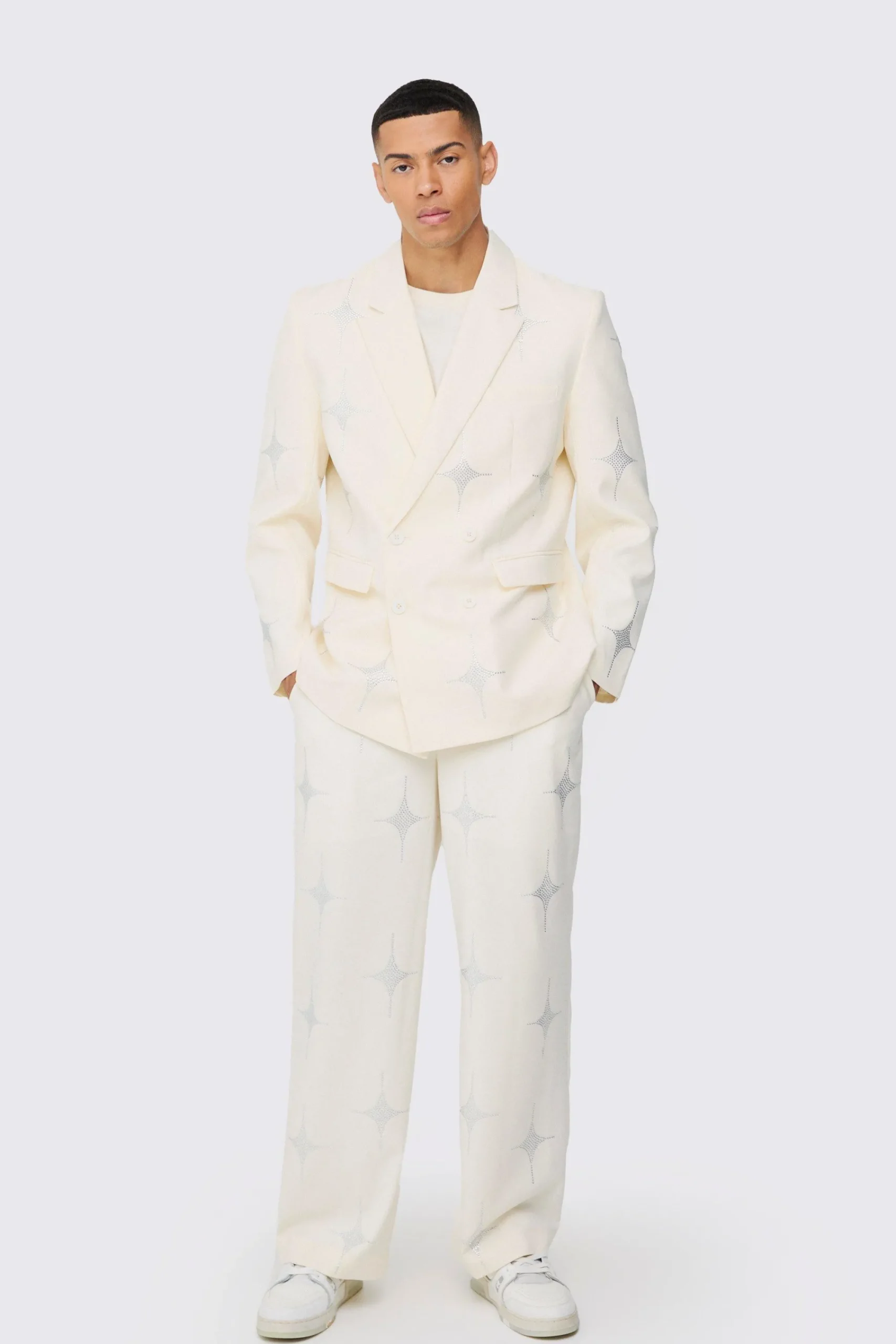 How do you improve on a classic? Every wardrobe needs its staples and a go-to in a dark neutral colour like black or navy is a must-have for formal events – but that doesn’t mean you can’t experiment with the template a little. You’ll always look sharp by matching a double-breasted suit jacket with a and , but keep a sense of fun by choosing a pattern like check or pinstripes. For less formal occasions, mix and max your jackets with fun shirts worn open at the collar, or go for a light, neutral colour like peach or sand with matching trousers and white trainers.