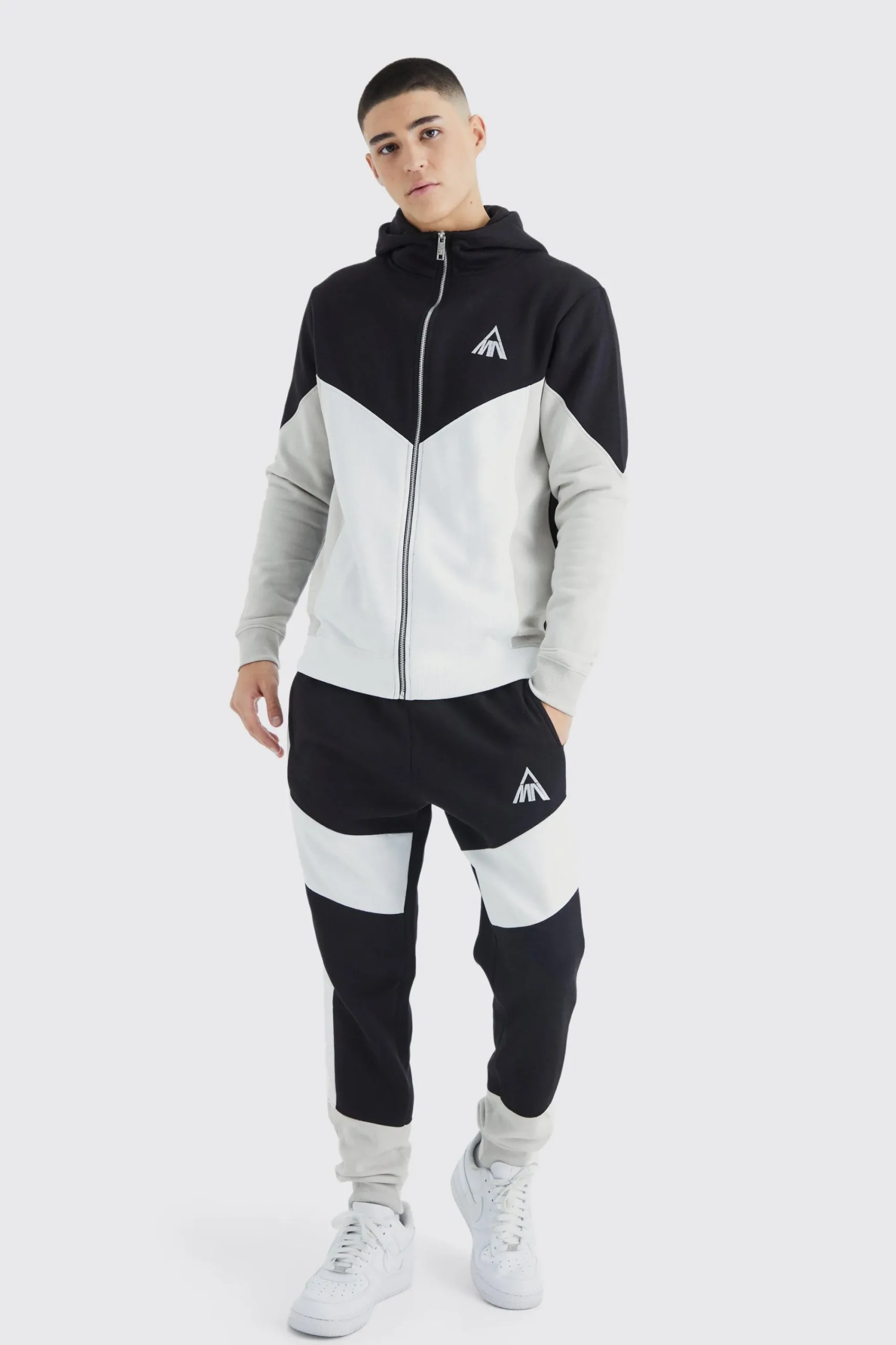 Mix and match shapes and colours with this uber-stylish collection of , designed to go from sofa to streets with no extra effort. Show off your lines with a skinny fit set, or pick an and joggers duo for comfy street casual. With a white tee and trainers you can rock any combo – how about all black for a bold monochrome, long sleeves and shorts for casual summer party vibes or even baby pink or blue for a softer aesthetic. Whichever you choose, with our range of hooded men’s tracksuits you’ll look effortlessly cool both in the gym and out.