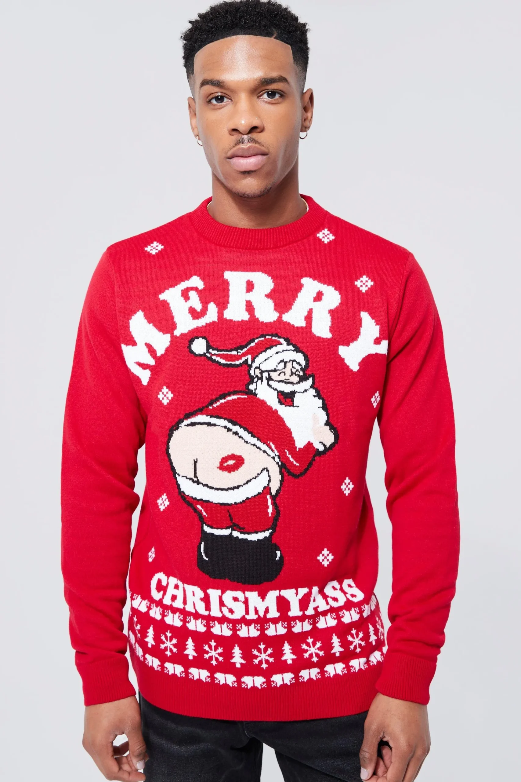 Layer up and look festive this holiday season in a Christmas Jumper from the boohooMAN collection.