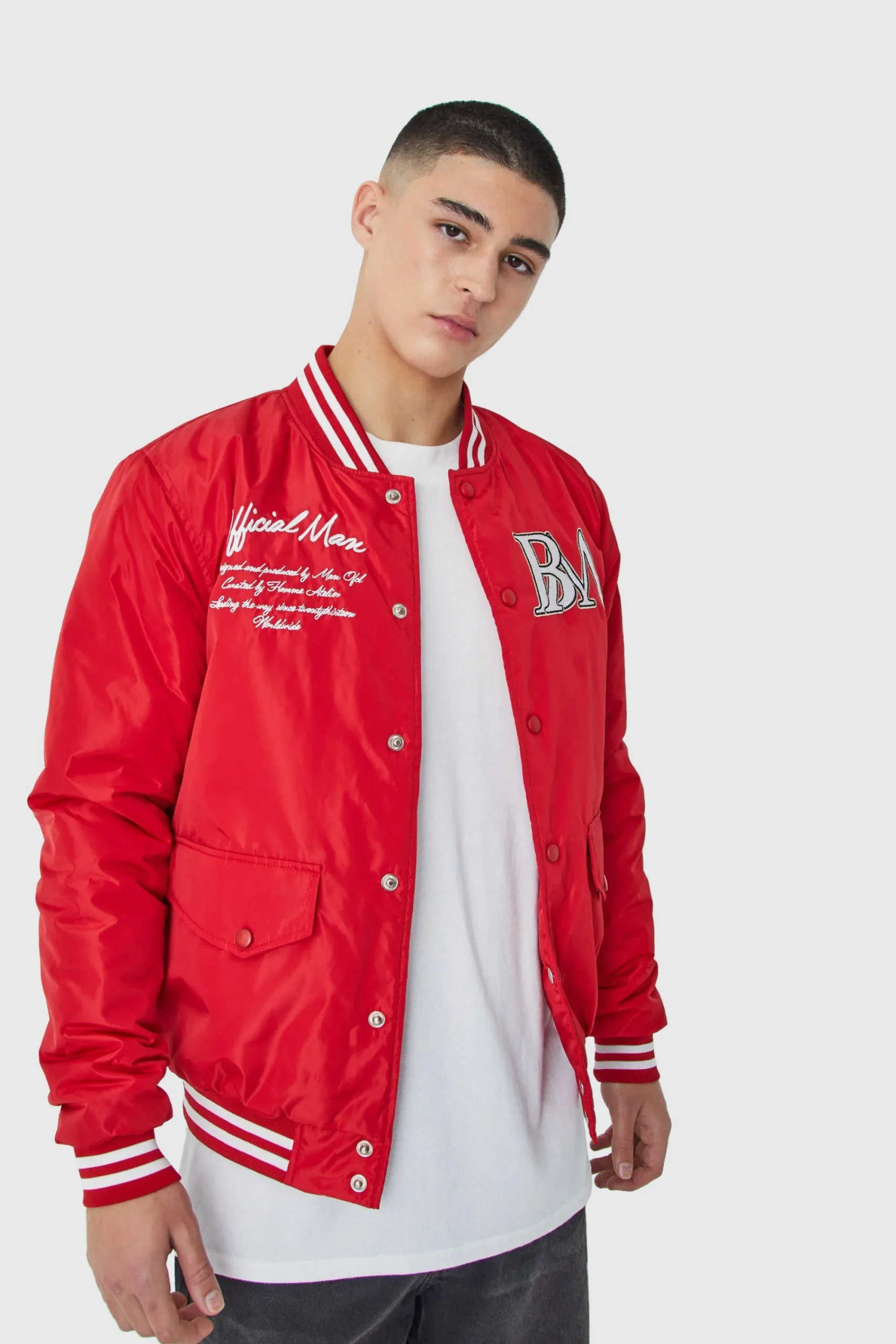 Bring out your sporty side with a men’s from the BoohooMAN range. Whether you follow baseball, football or just want to channel high school jock vibes, a varsity jacket is perfect for adding a small amount of bulk without losing shape or silhouette. Choose your team colours, go for a stylish block colour with contrast trim or choose a classic black and white pin stripe with applique features. Our varsity jackets are versatile enough to wear day or night and look great with jeans, white , or even and crew socks.