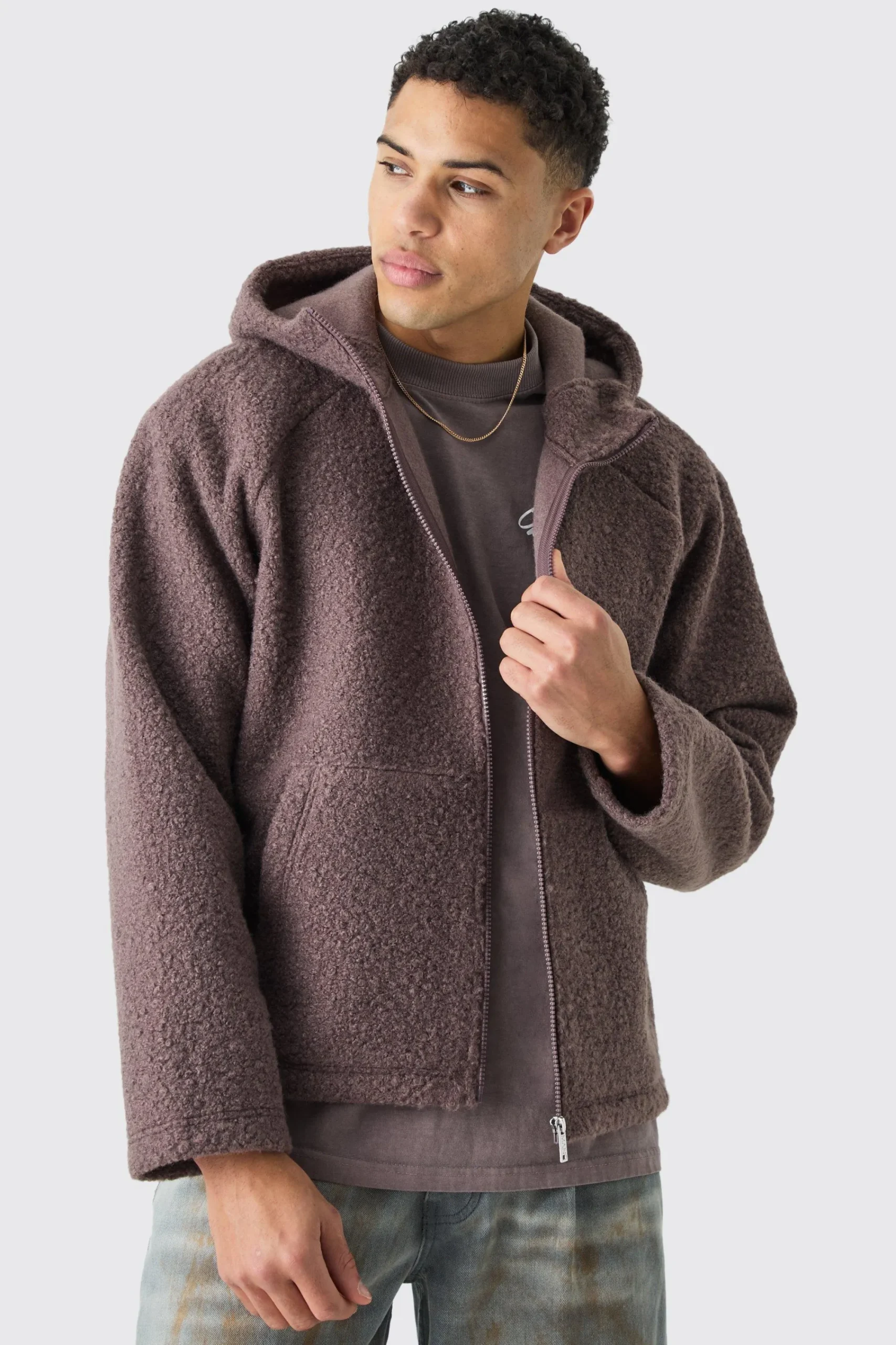 boohooMAN Oversized Boxy Boucle Borg Zip Thru Hoodie | UK| Hoodies & Sweatshirts