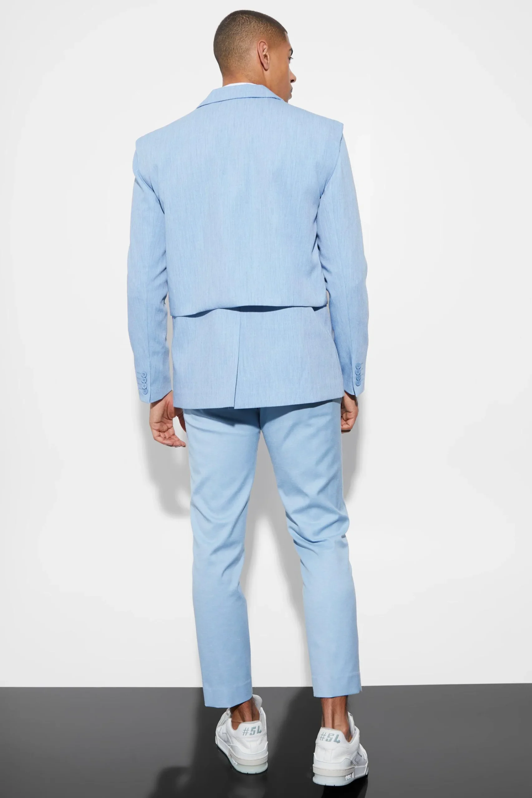 90% Polyester, 8% Viscose, 2% Elastane. Model is 6’1 and wears size 38.