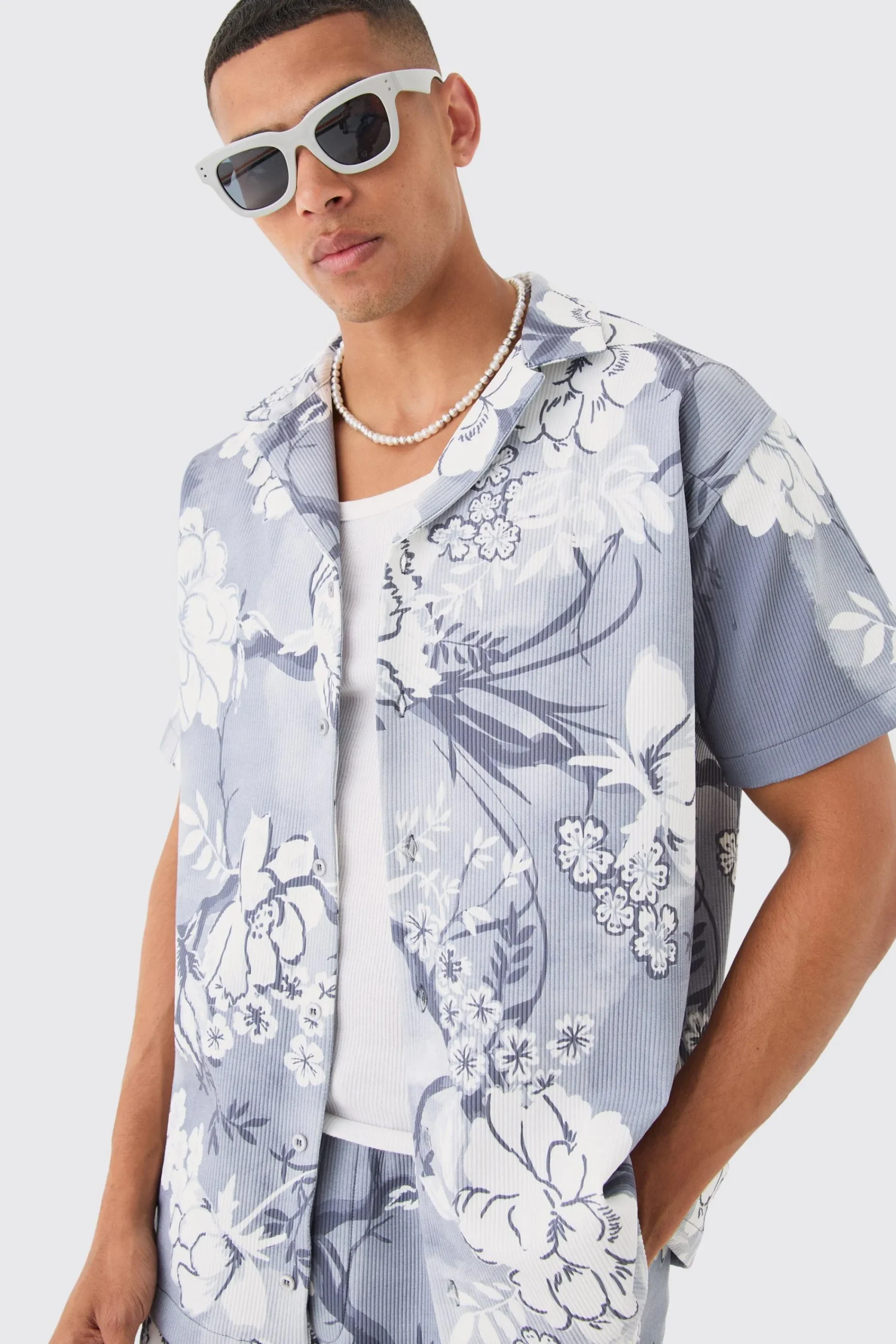 boohooMAN Oversized Floral Printed Pleated Shirt & Short Set | UK| Sets & Co-Ords