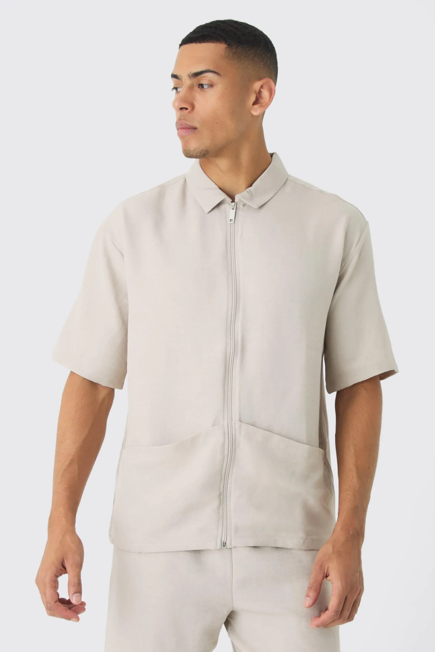 80% Linen, 20% Polyester. Model is 6’1 and wears size M.