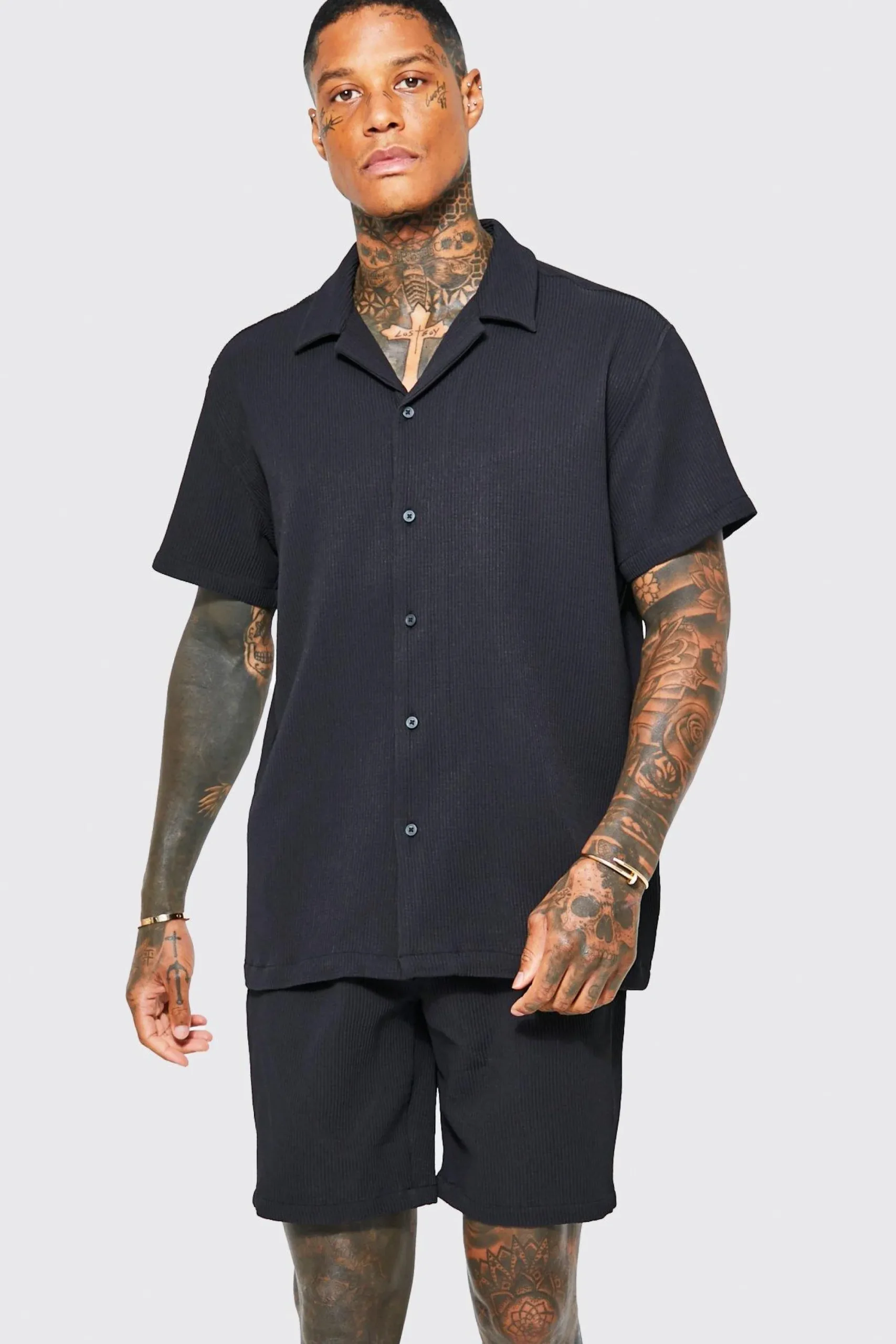 boohooMAN Oversized Revere Pleated Shirt And Short | UK| Sets & Co-Ords