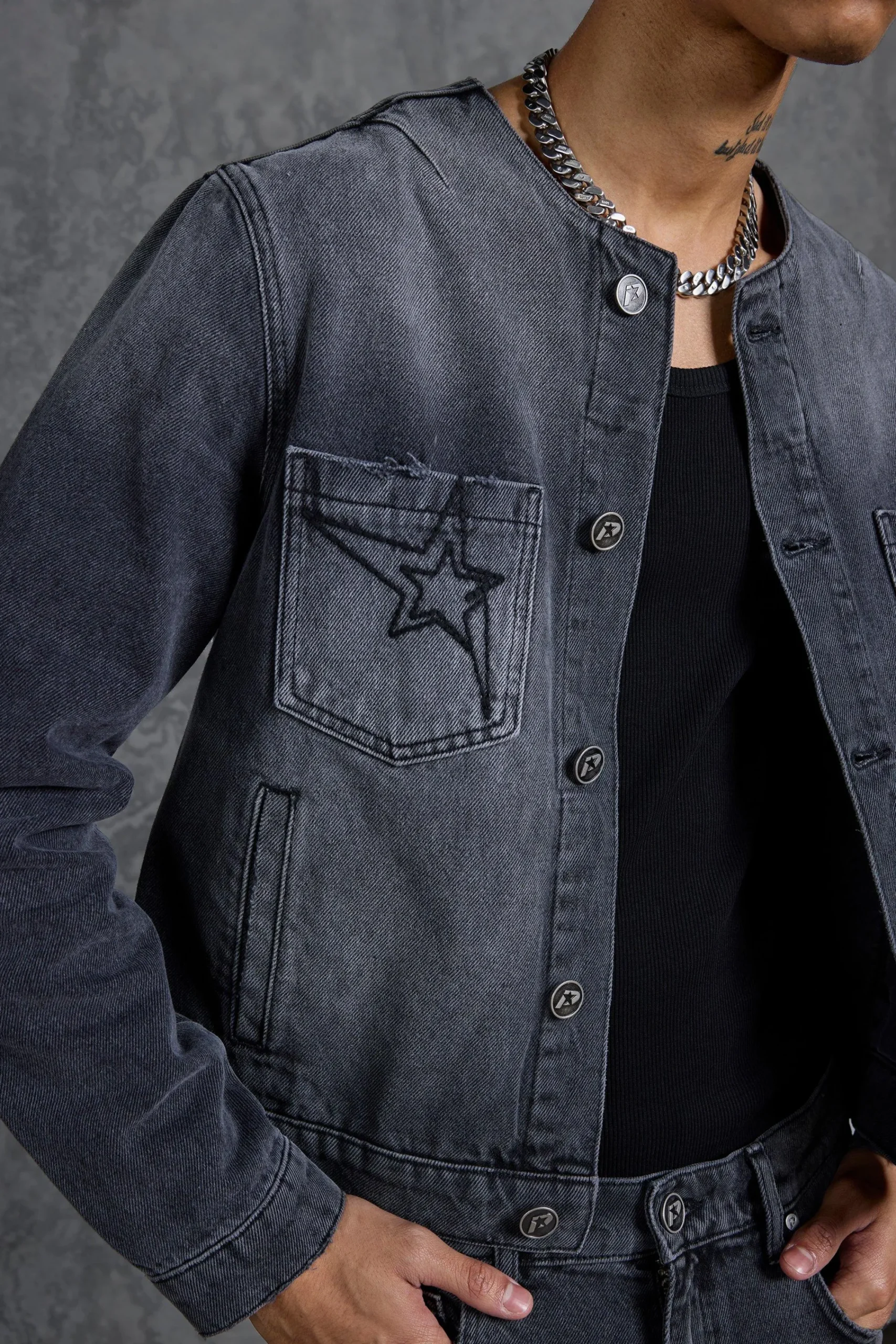 - – P-Star embroidery on chest pockets and branded PU patch