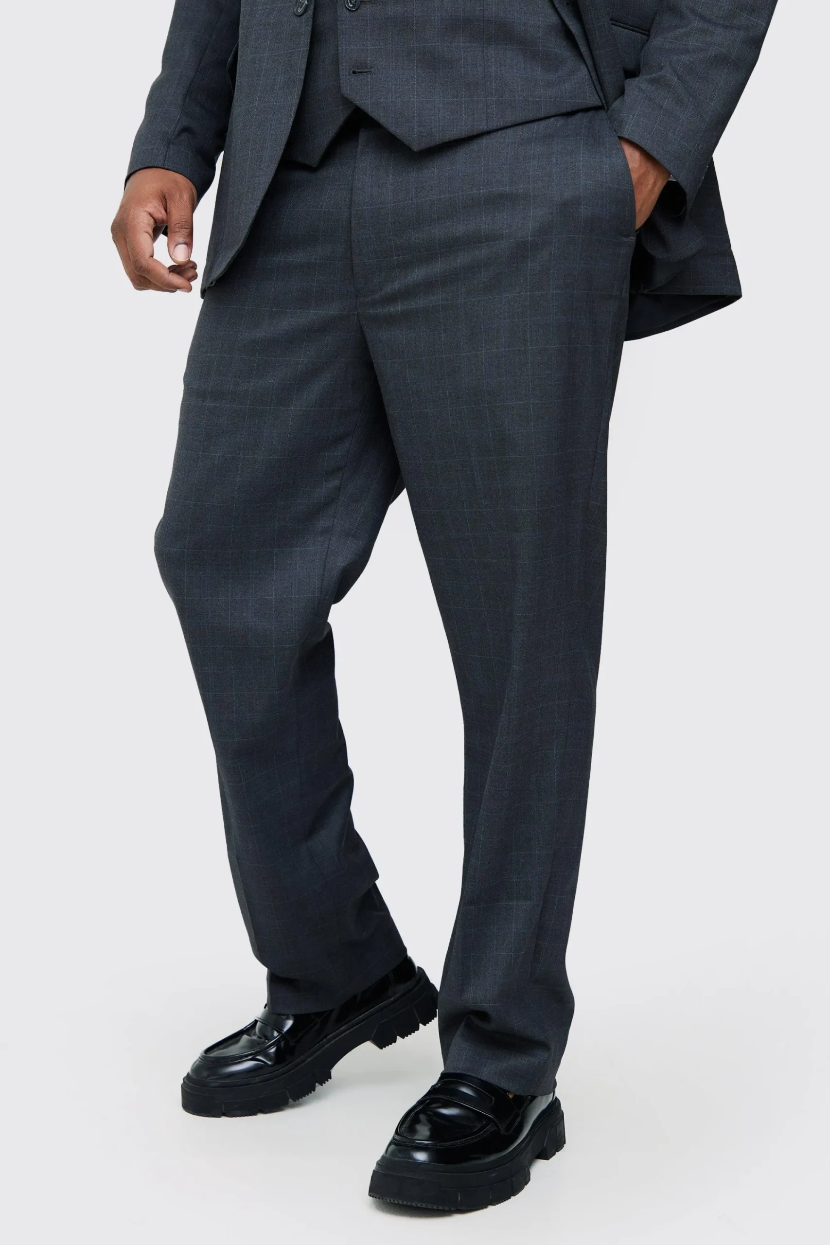 boohooMAN Plus Check Regular Fit Suit Trouser | UK| Suits & Tailoring|Sets & Co-Ords