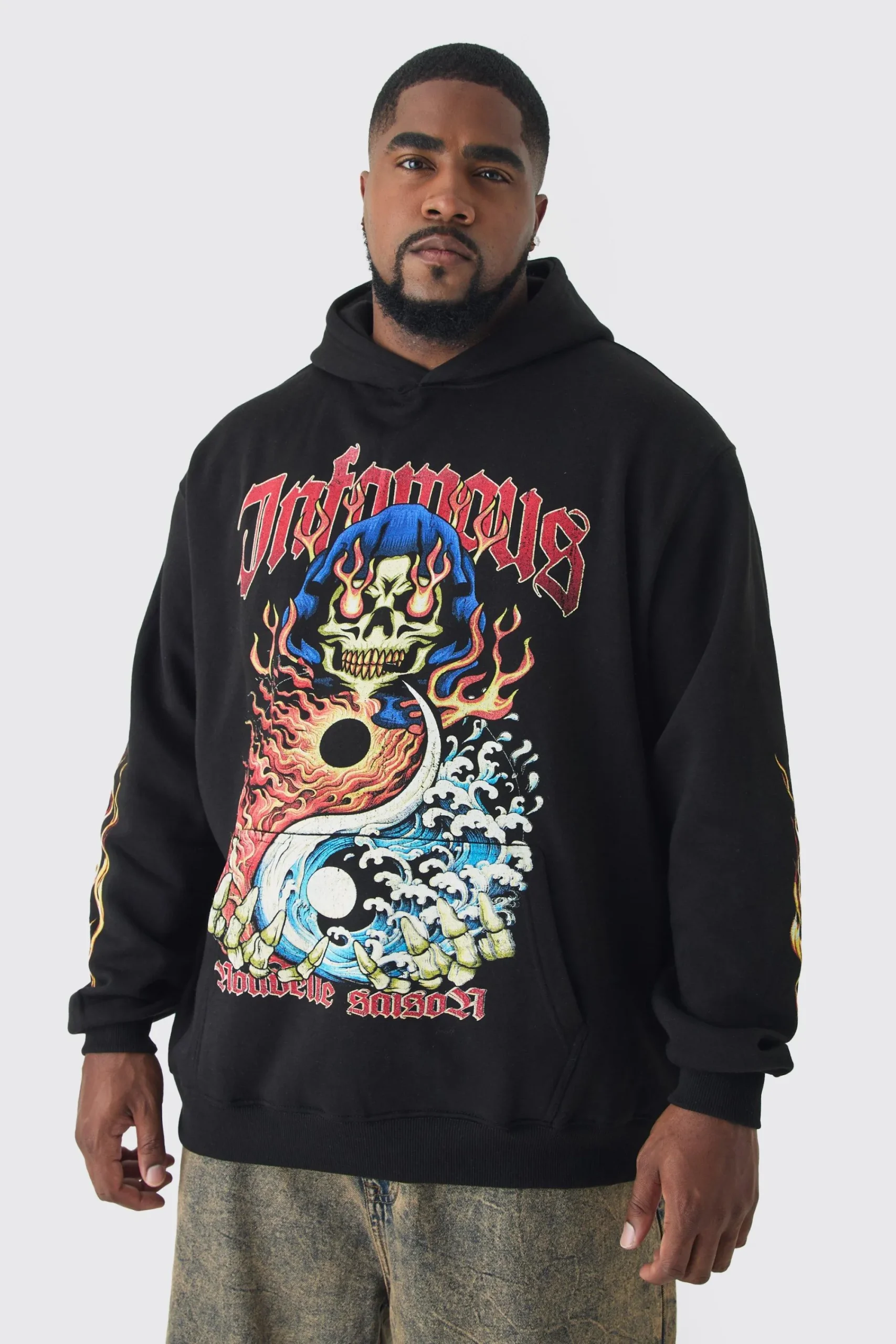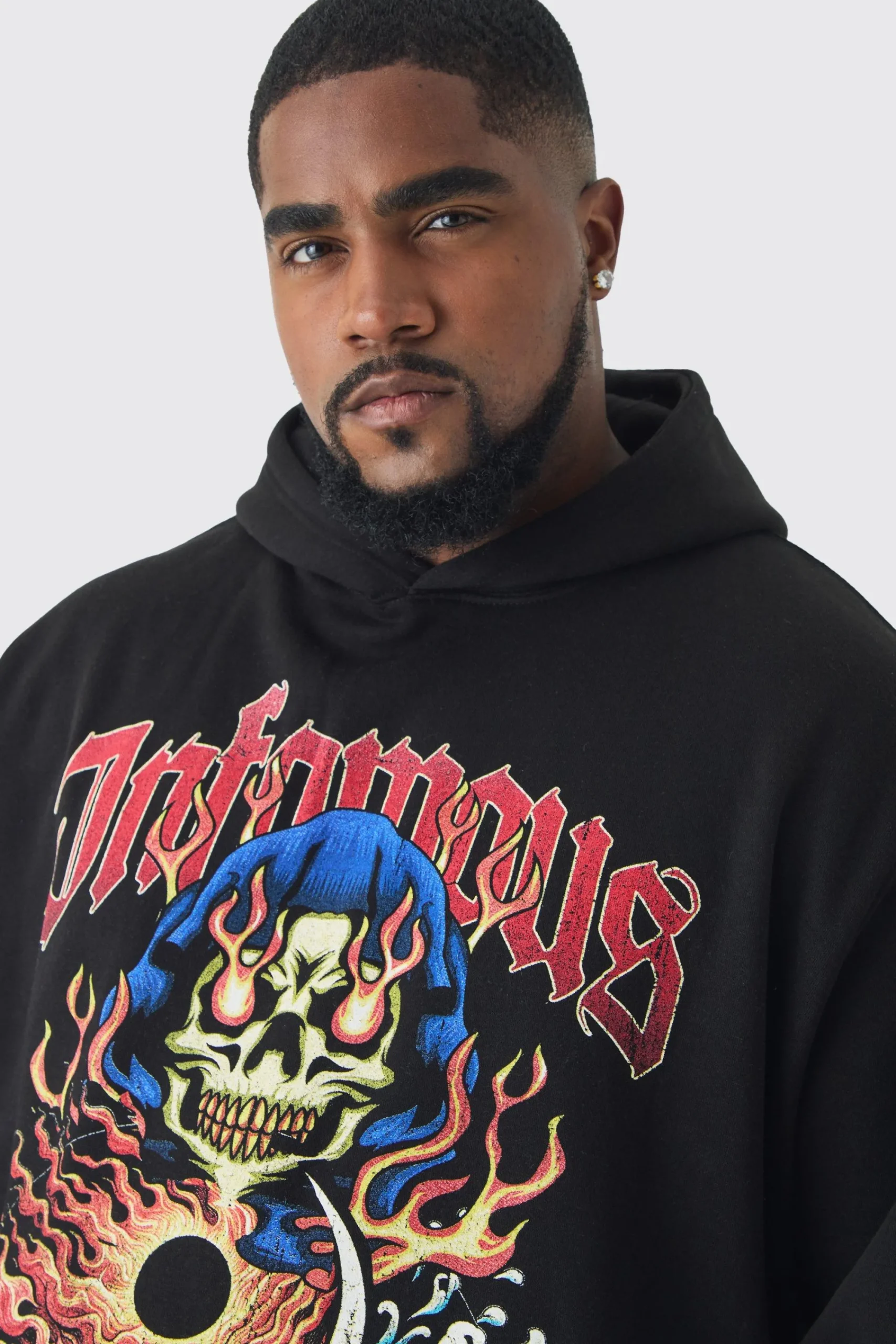 boohooMAN Plus Infamous Flame Print Hoodie In | UK| Hoodies & Sweatshirts