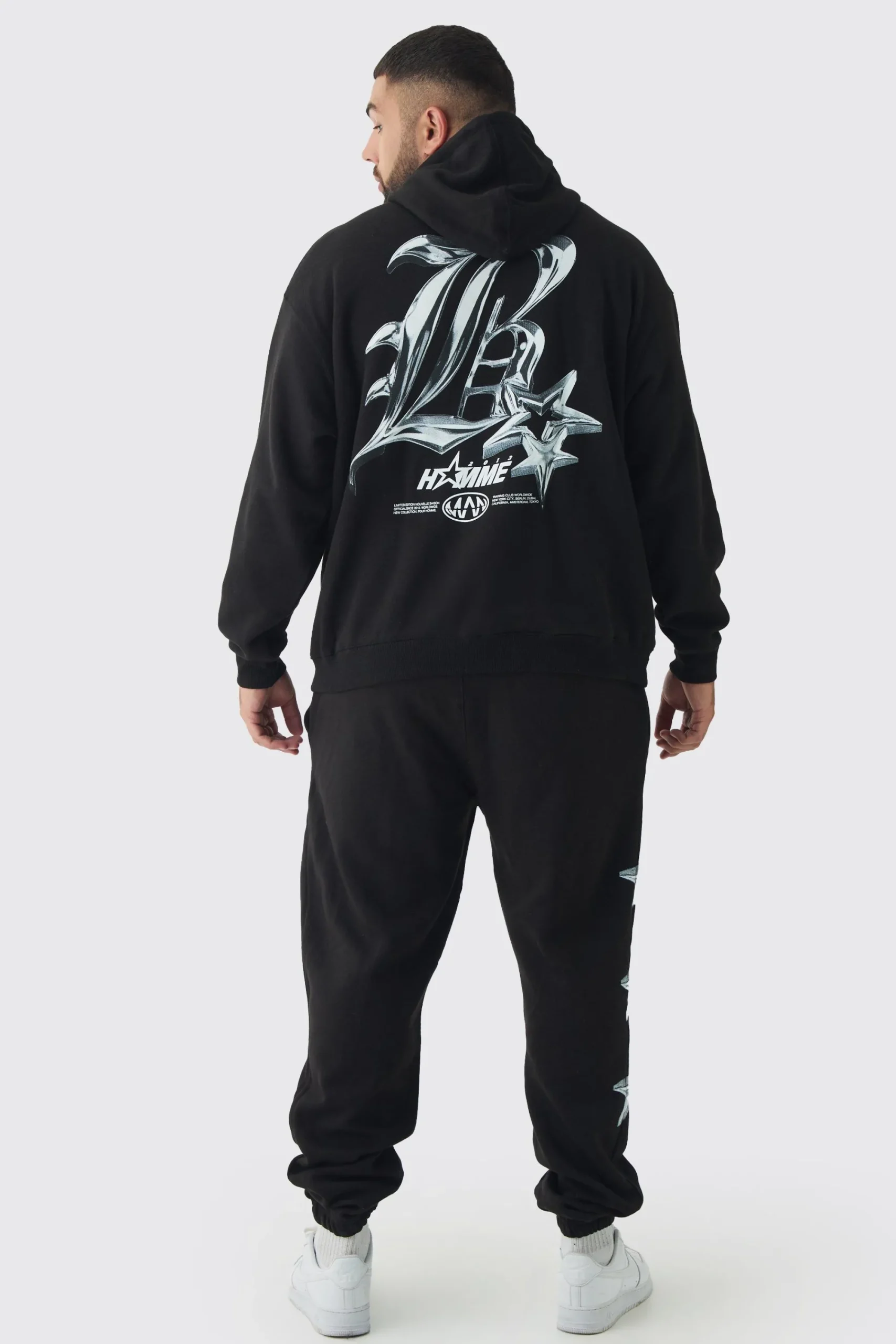 boohooMAN Plus Metallic Y2K Graphic Tracksuit | UK| Tracksuits
