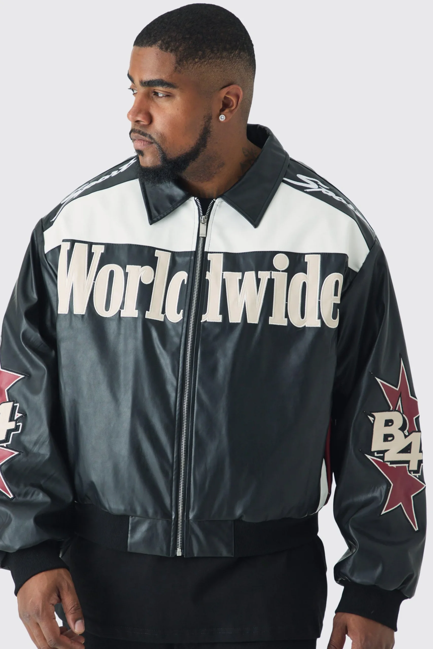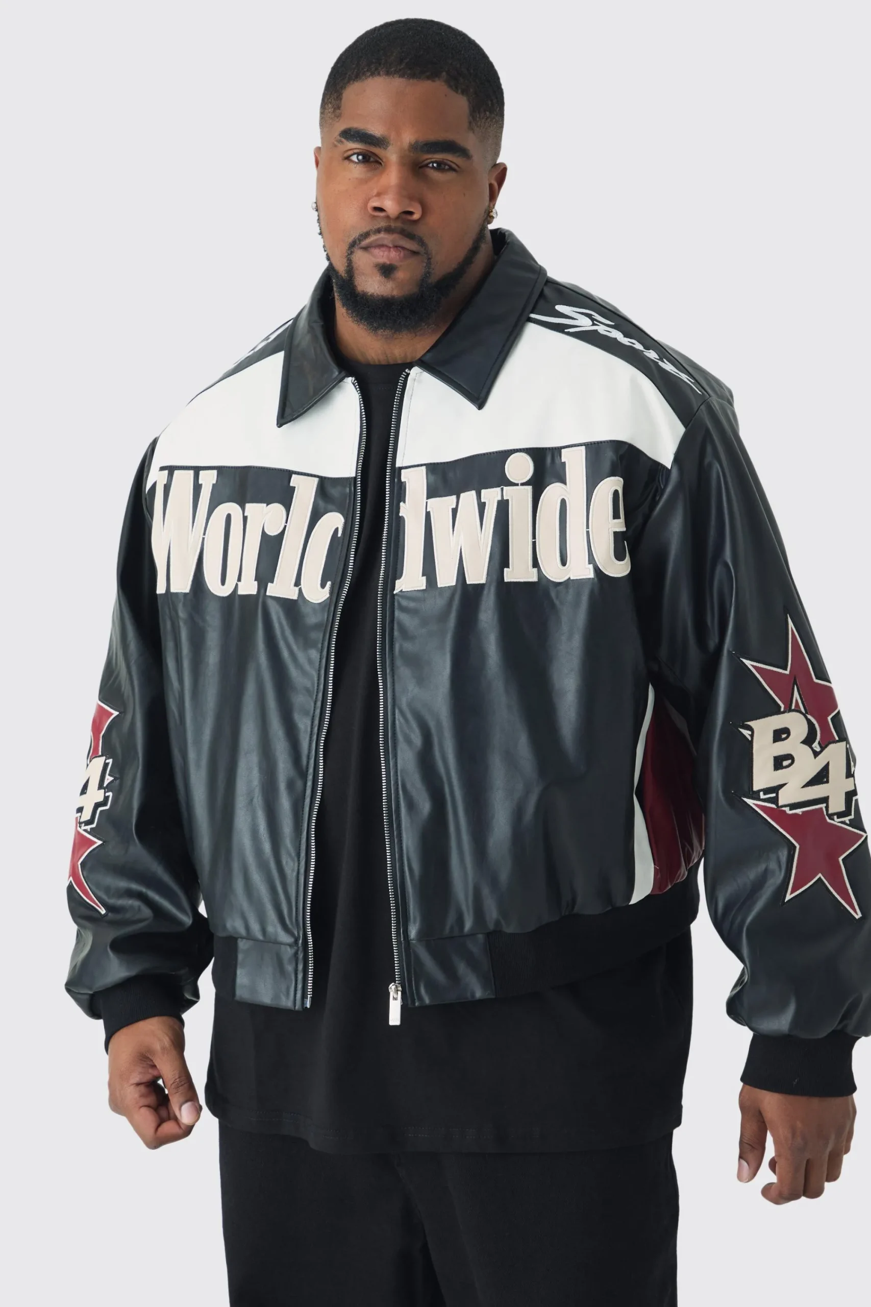 100% polyurethane. Model is 6″1 and wears a size 3XL.