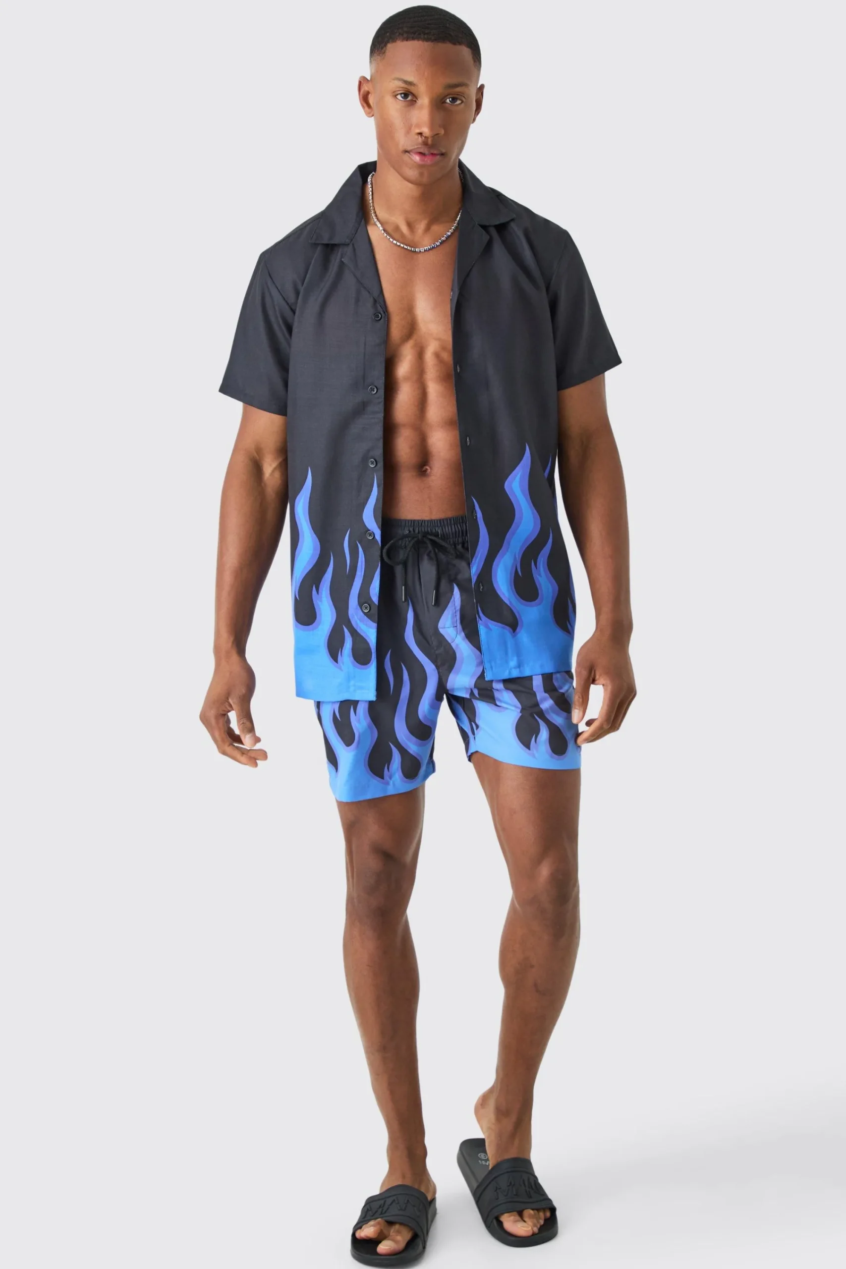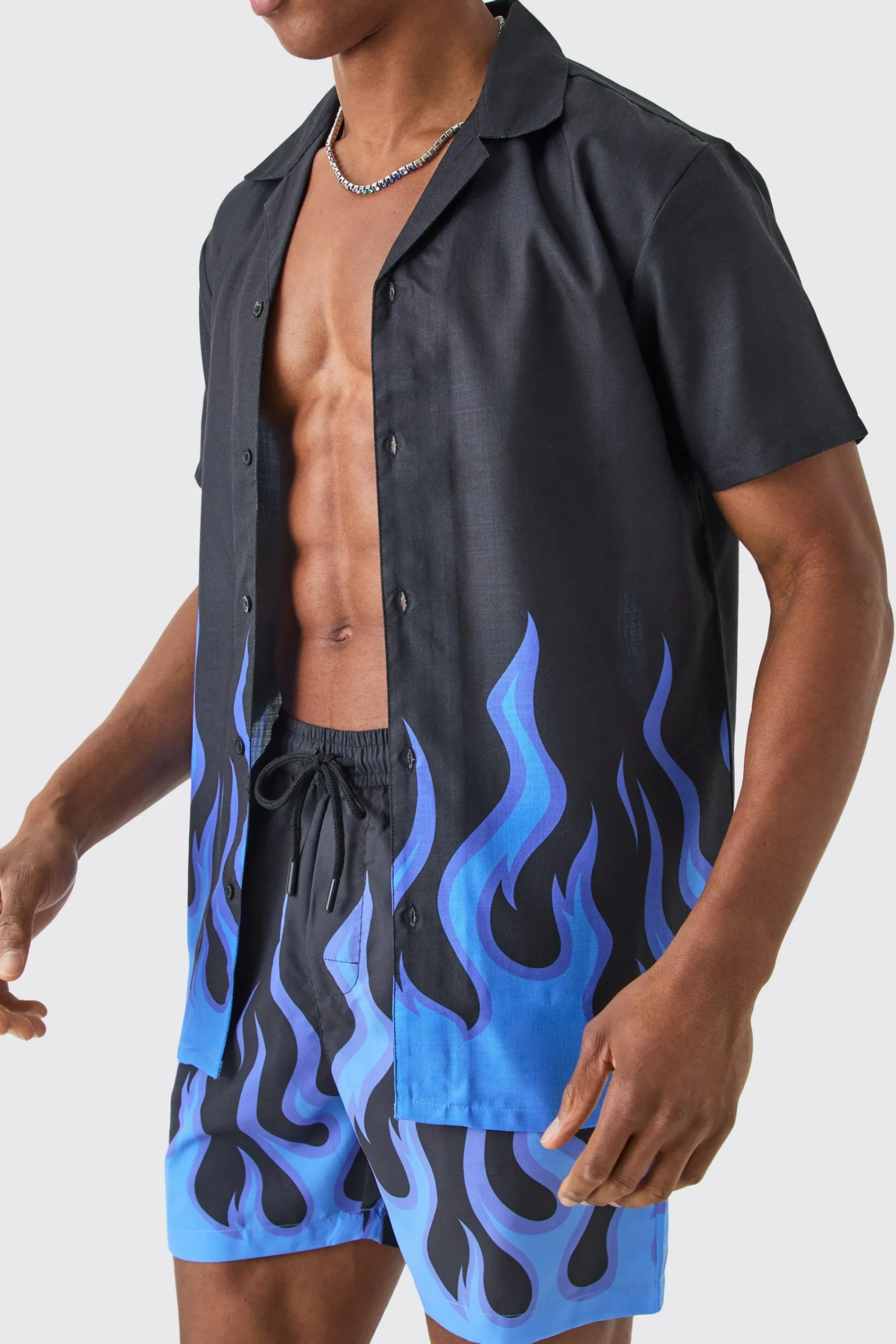 Shirt 100% Viscose, Shorts 100% Polyester. Model is 6’1 And Wears Size M