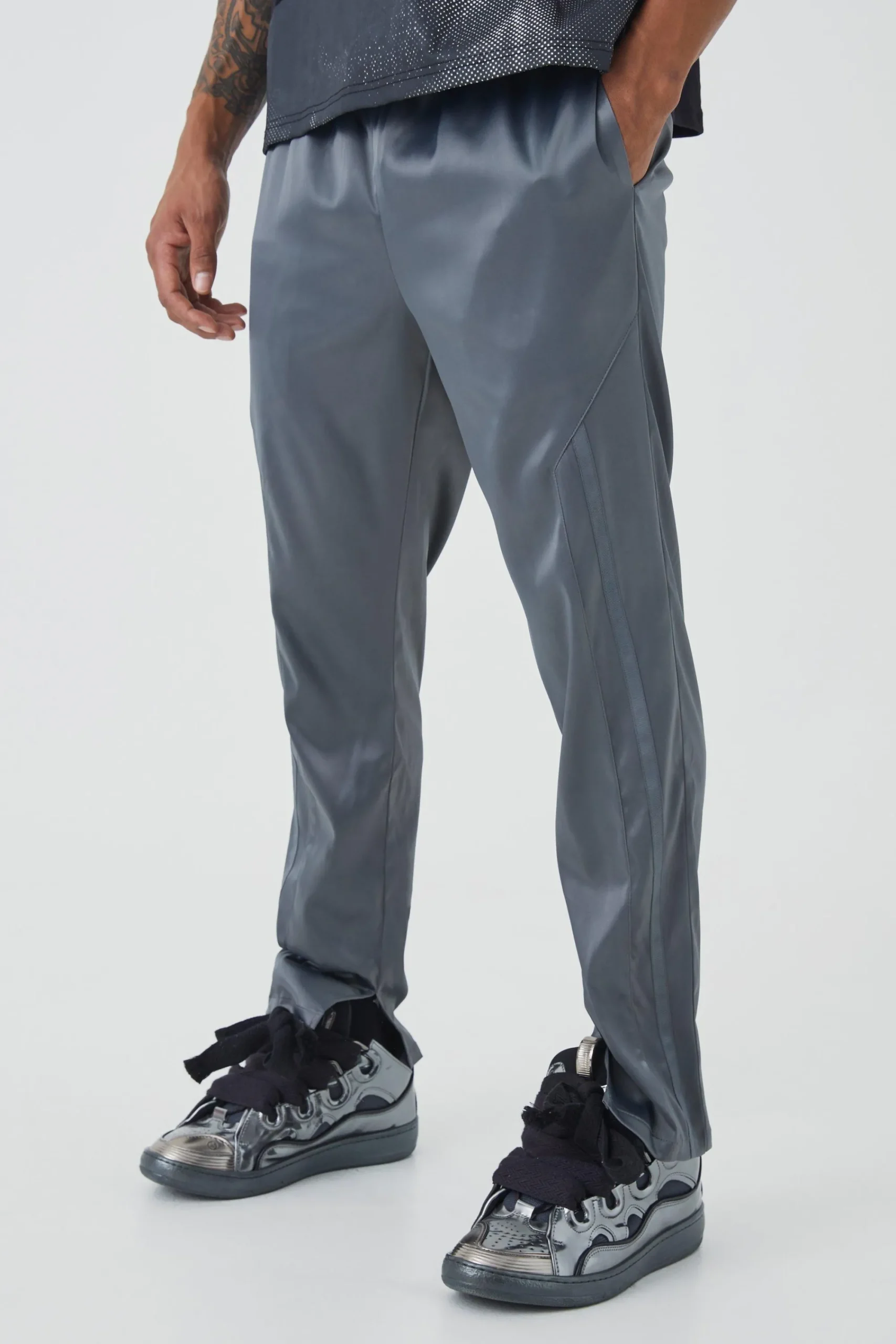 Discover the ultimate selection for your night out with . Our collection showcases a fusion of style, featuring graphic t-shirts crafted from premium interlock fabric with embroidery detailing. Luxurious satin trousers take centre stage, boasting clean panelling for a refined look. From rhinestone star outlines to metal emblems scattered across heavyweight jersey hoodies, every detail will secure all eyes on you. Our tailoring is sleek and contemporary, with subtle nods to streetwear influences. Elevate your night out with the boohooMAN x DDG Black Edit, where style meets edginess in a perfect blend.