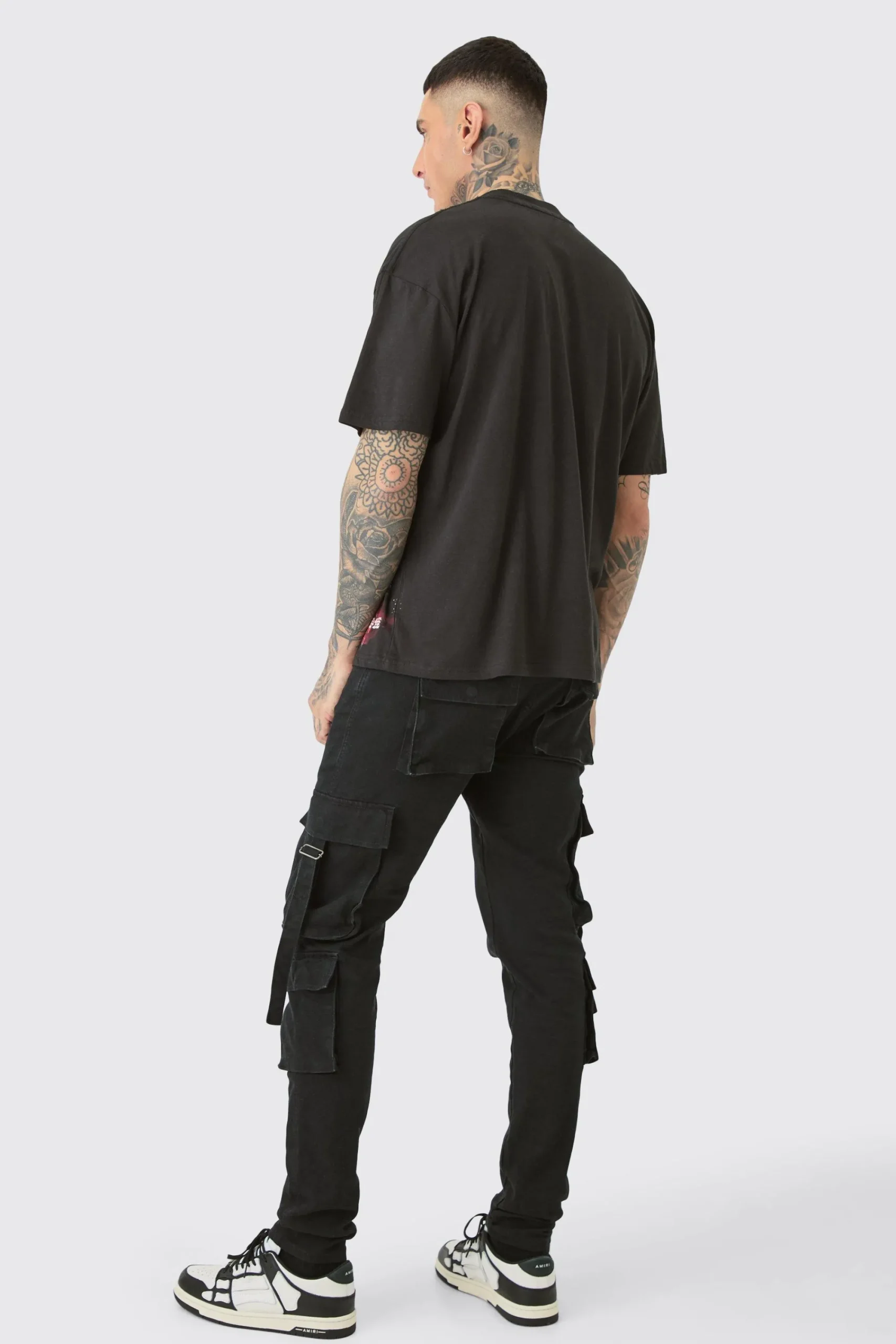 98% Cotton 2% Elastane. Model is 6″4 and wears a size L
