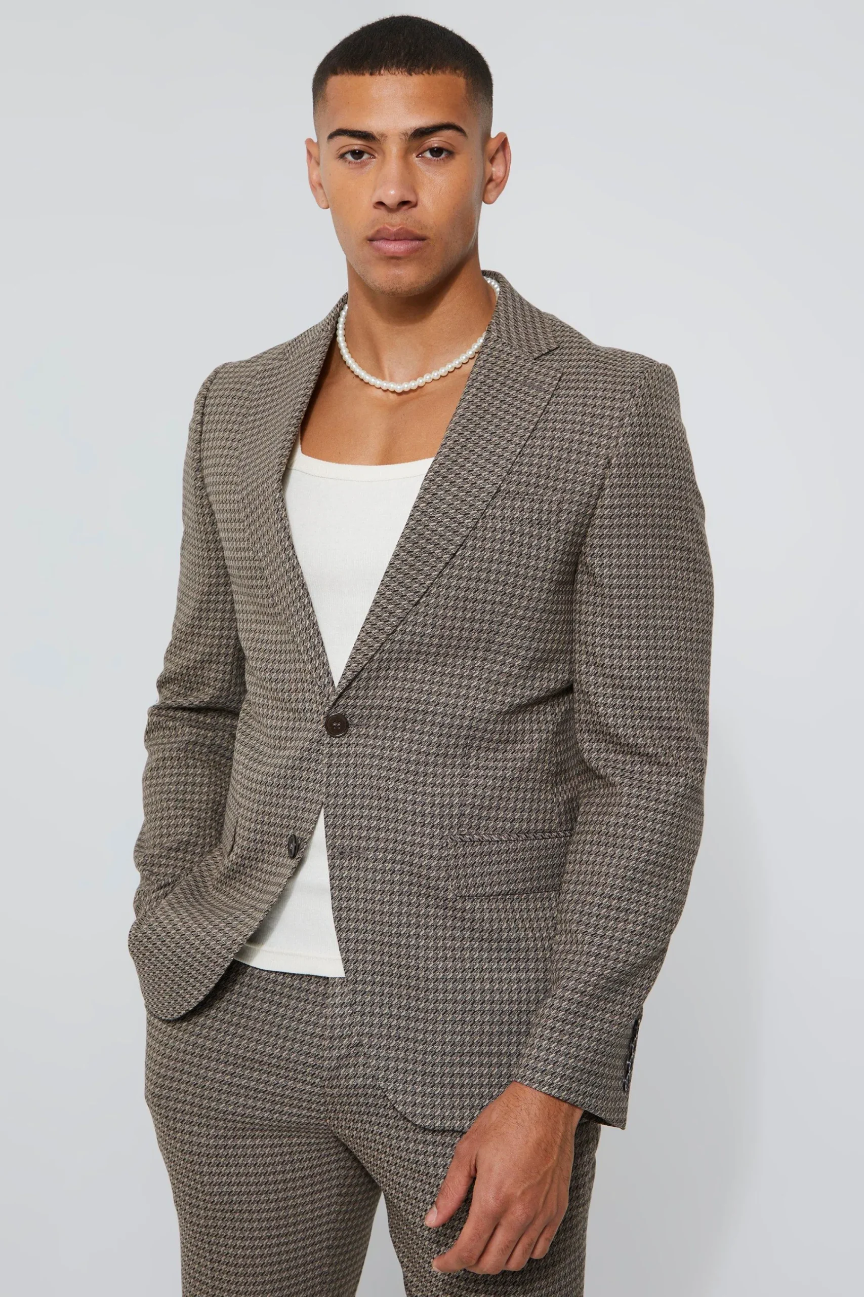 How do you improve on a classic? Every wardrobe needs its staples and a go-to in a dark neutral colour like black or navy is a must-have for formal events – but that doesn’t mean you can’t experiment with the template a little. You’ll always look sharp by matching a double-breasted suit jacket with a and , but keep a sense of fun by choosing a pattern like check or pinstripes. For less formal occasions, mix and max your jackets with fun shirts worn open at the collar, or go for a light, neutral colour like peach or sand with matching trousers and white trainers.