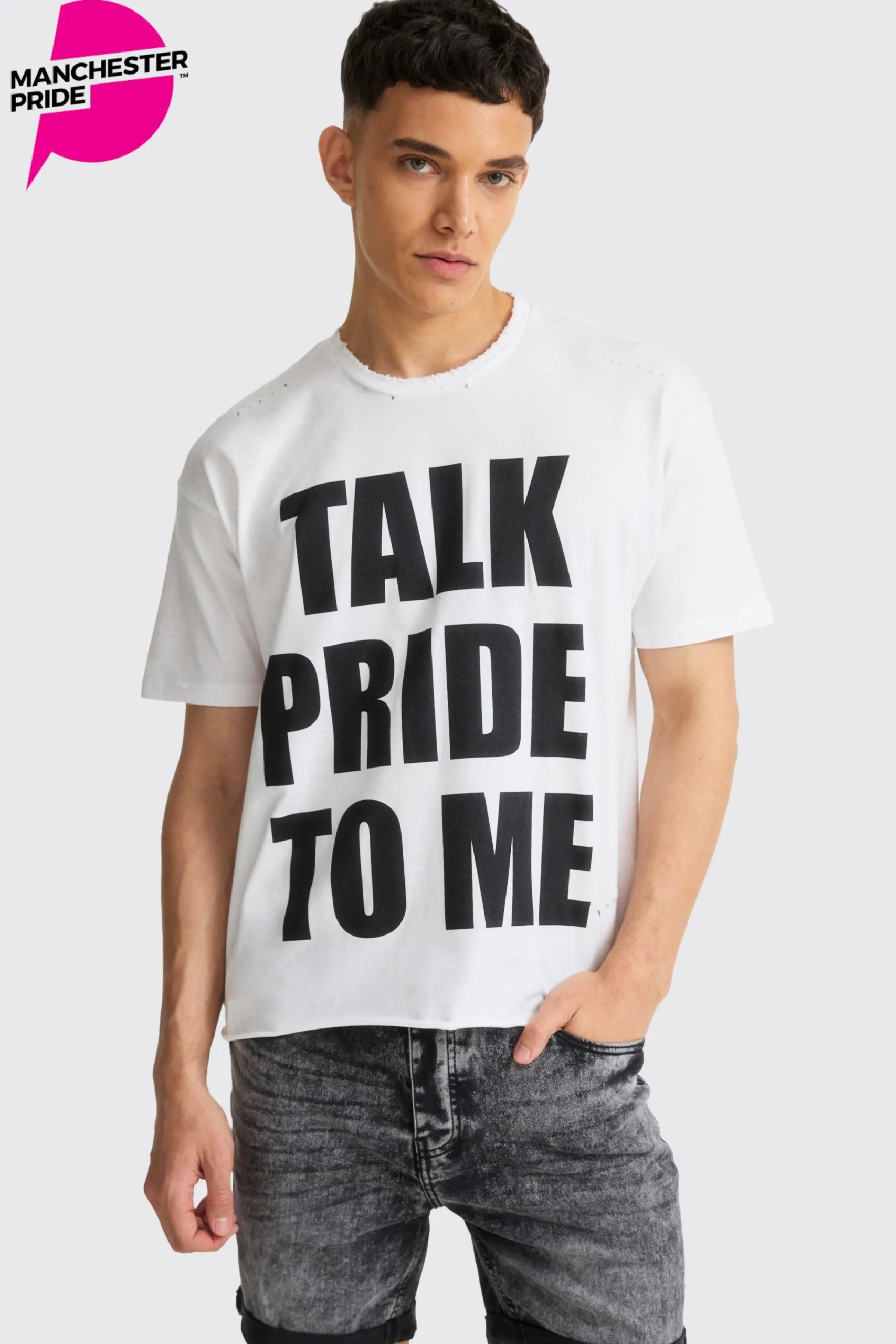 Our promotes self-love, empowerment, and the freedom of expression. Featuring oversized boxy fits and distressed details, these colourful graphic t-shirts are all about having fun. Whether you’re owning the parade or lighting up the dance floor at a Pride party, we’ve got the perfect vibe for you. Pair it with your favourite pair of cargo trousers and chunky trainers for an on point outfit. Plus, 100% of net profits from the sales of each t-shirt will be donated to Manchester Pride.