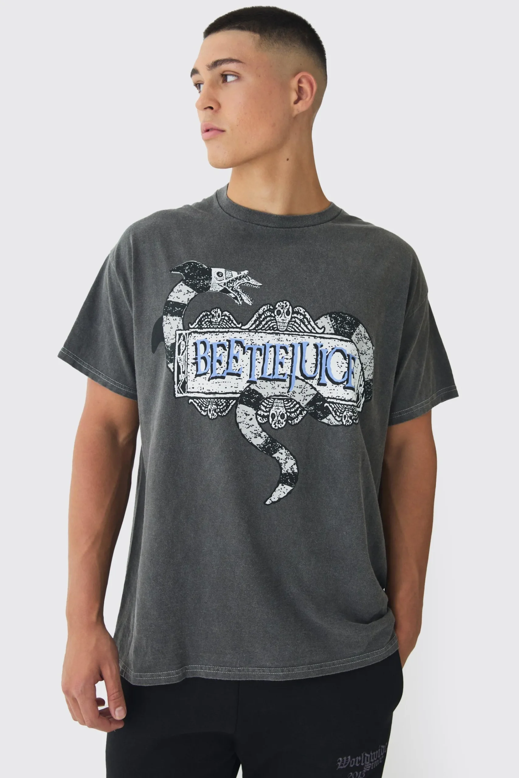 Oversized Beetlejuice Wash License Print T-Shirt | UK^boohooMAN New