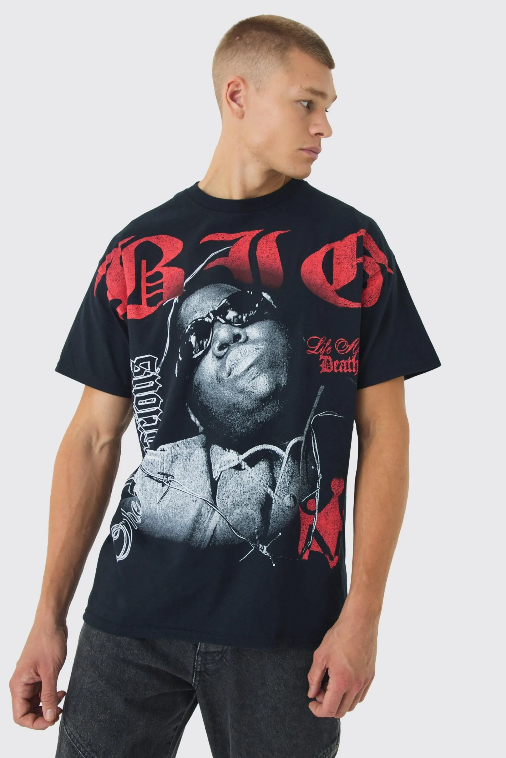 Oversized Biggie Over Seams License Print T-Shirt | UK^boohooMAN Online