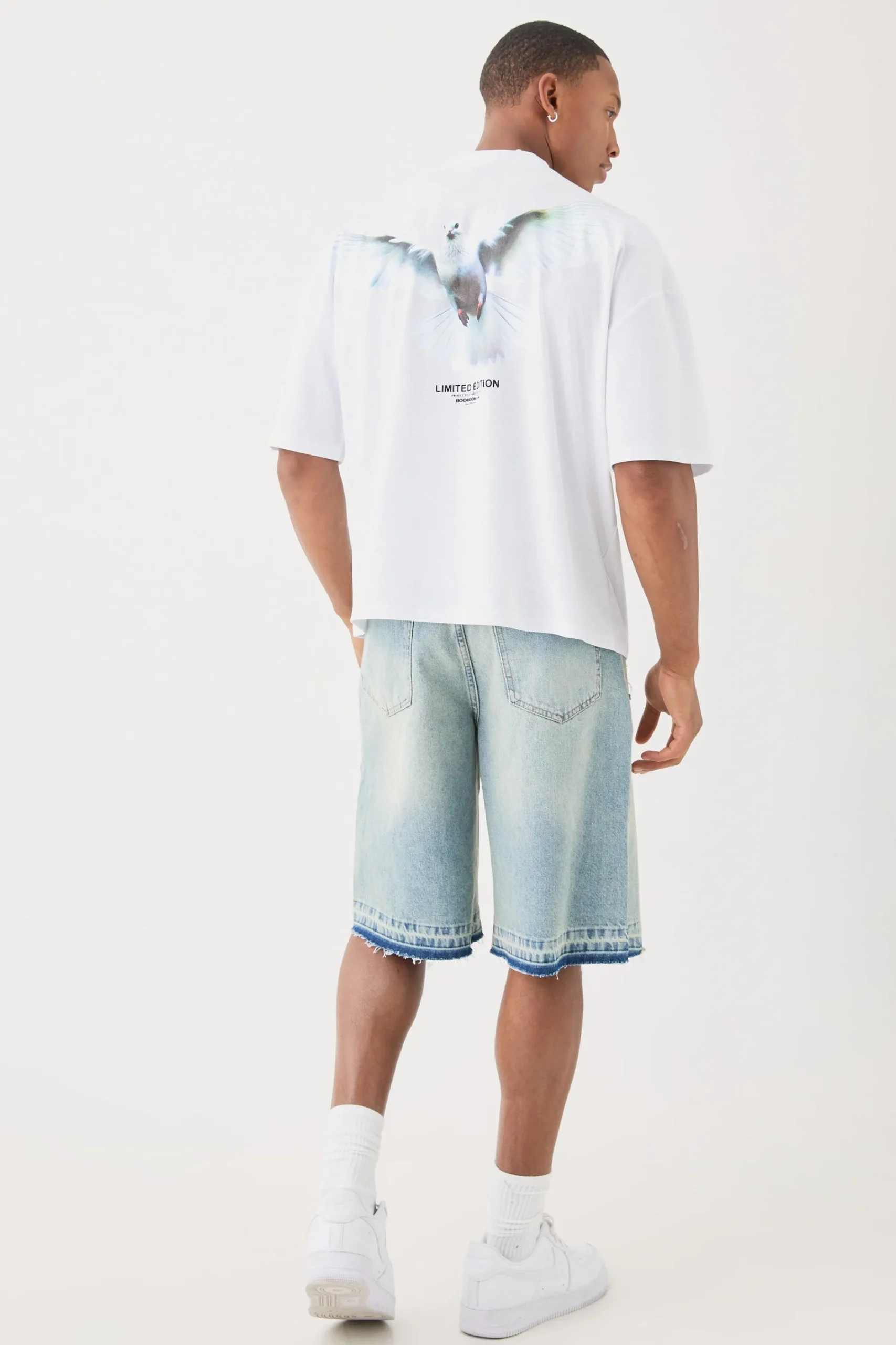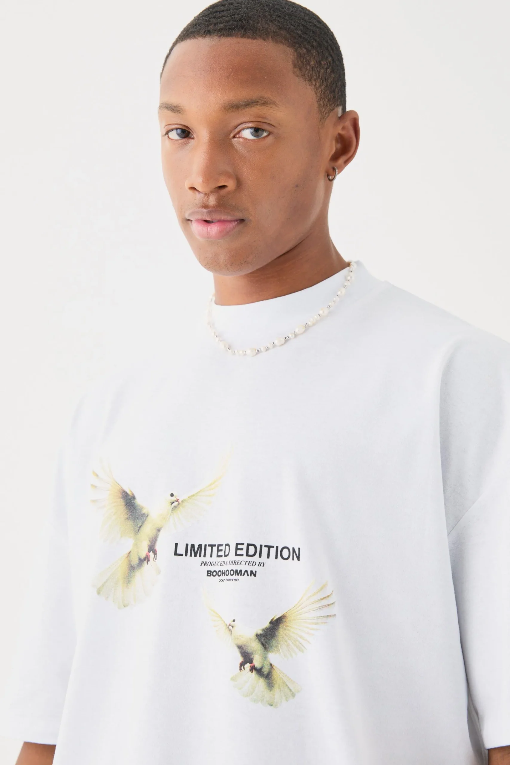 Oversized Boxy Extended Neck Limited Edition Dove Back Print T-shirt | UK^boohooMAN Sale