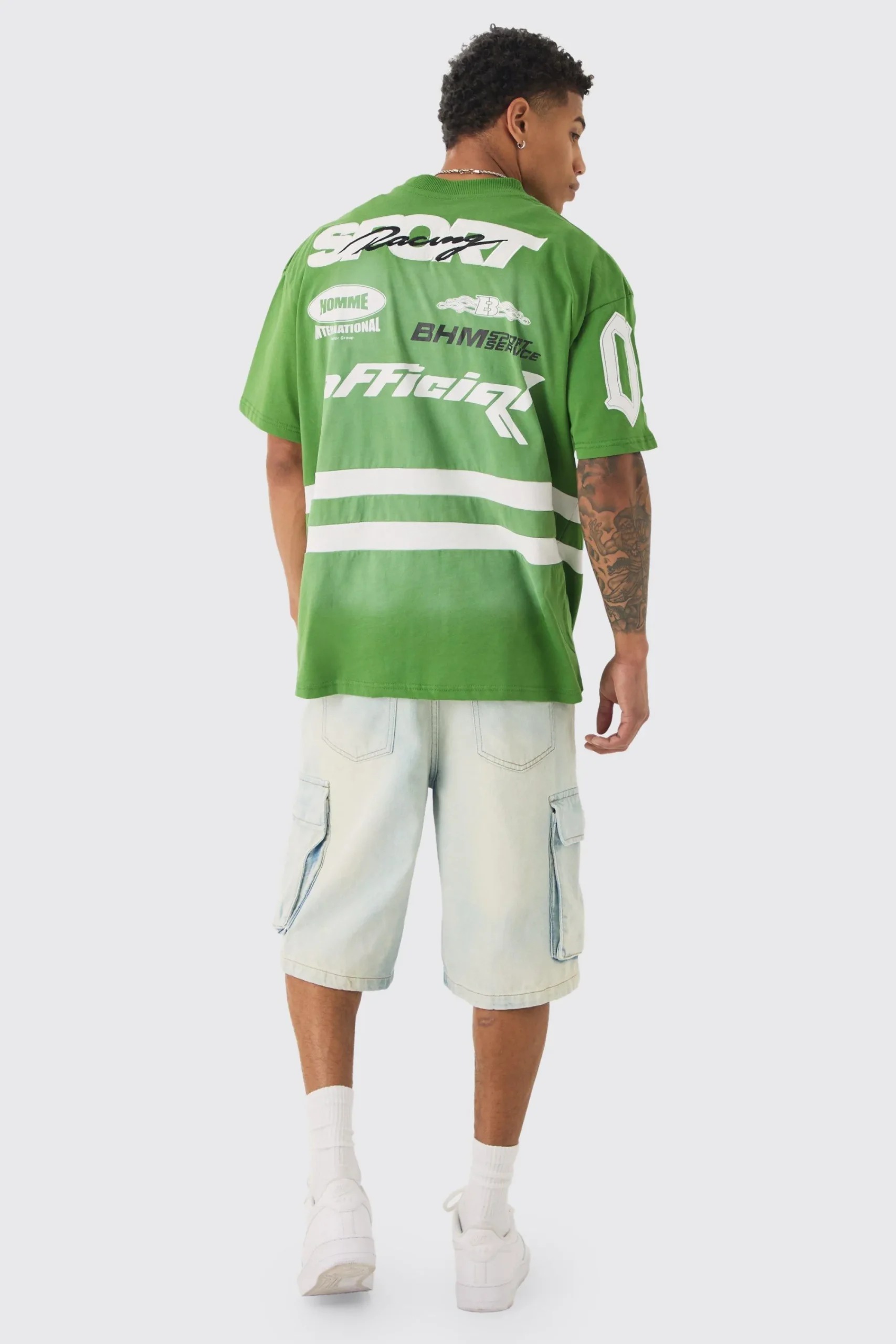 Oversized Boxy Extended Neck Washed Applique Moto T-shirt | UK^boohooMAN Hot