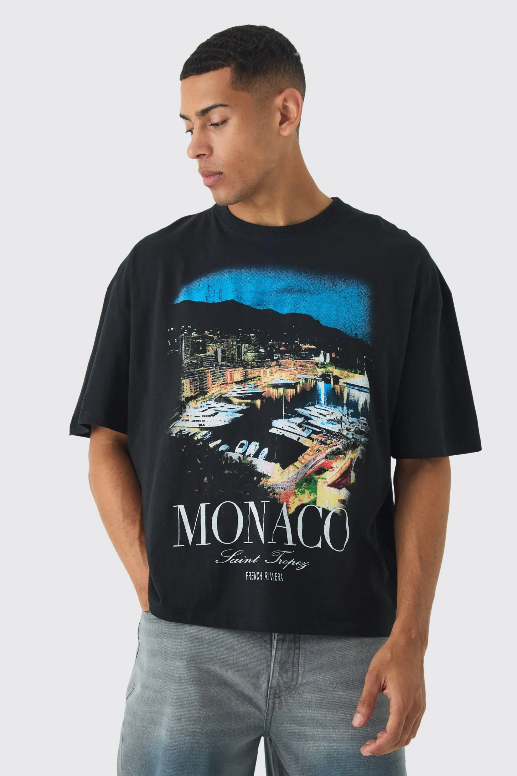 Oversized Boxy Monaco Saint Tropez Graphic T-shirt | UK^boohooMAN Online