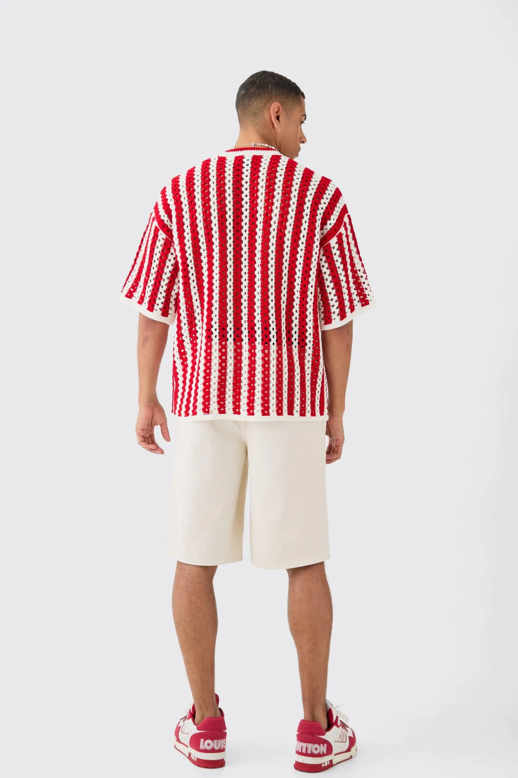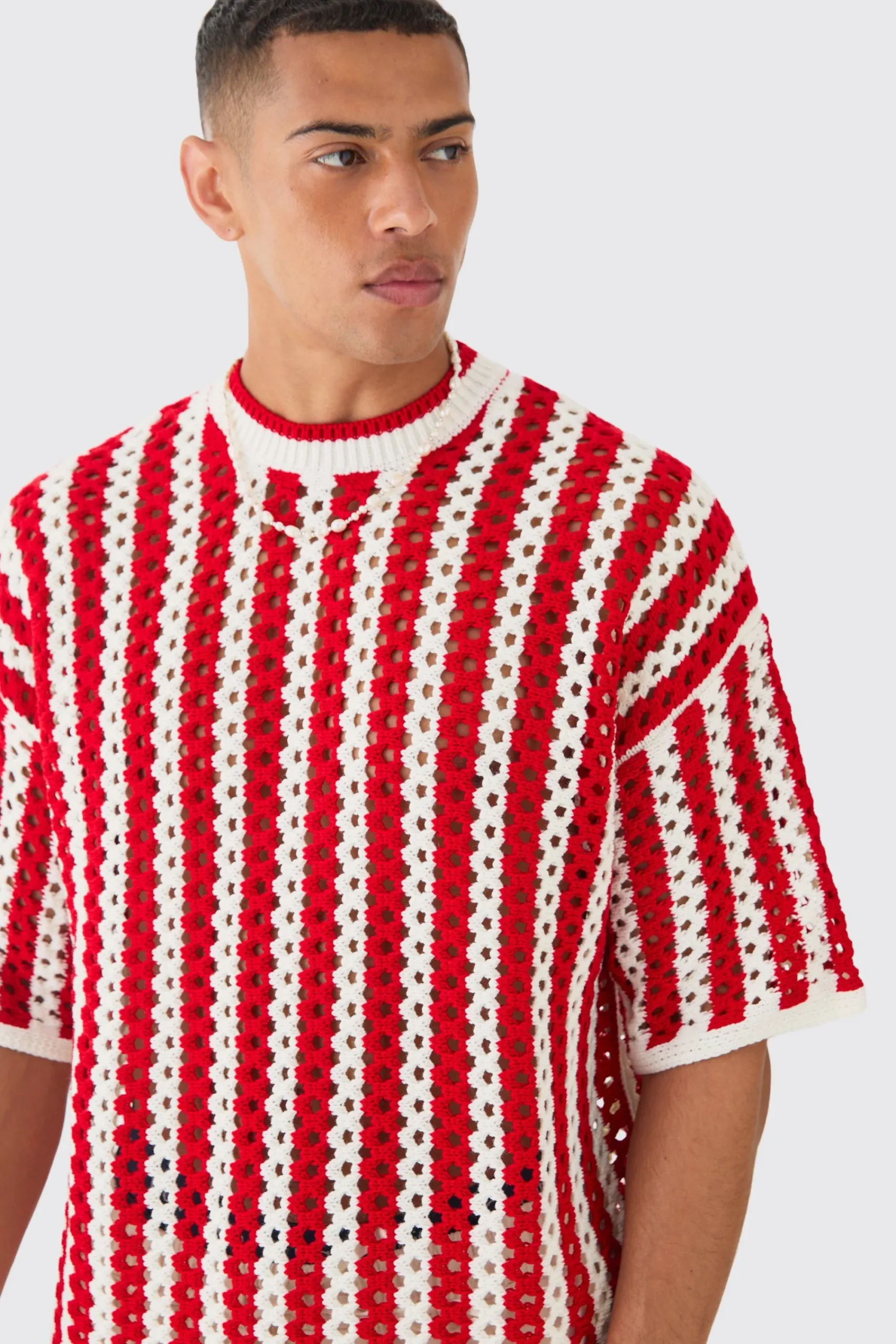 Oversized Open Stitch Stripe Knitted T-shirt | UK^boohooMAN Clearance