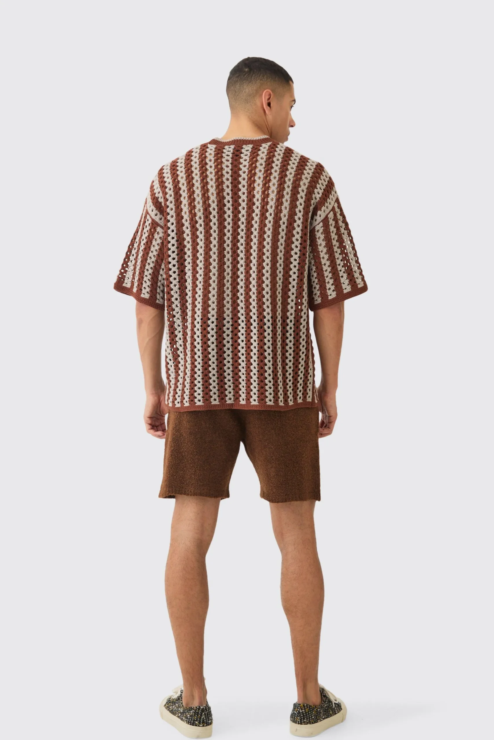 100% Acrylic. Model is 6’1 and wears size M.
