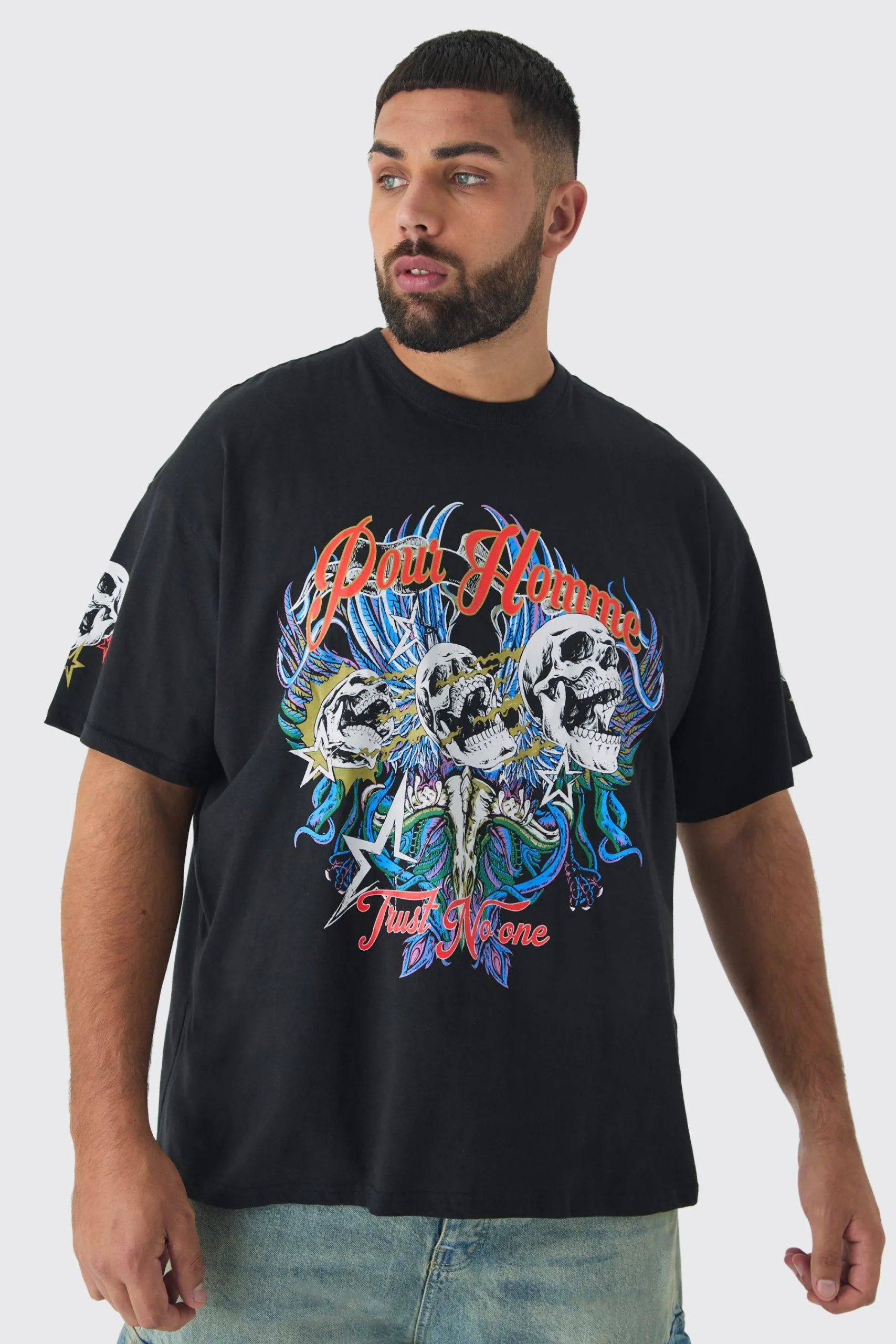 Plus Pour Homme Skull Print Oversized T-shirt In | UK^boohooMAN