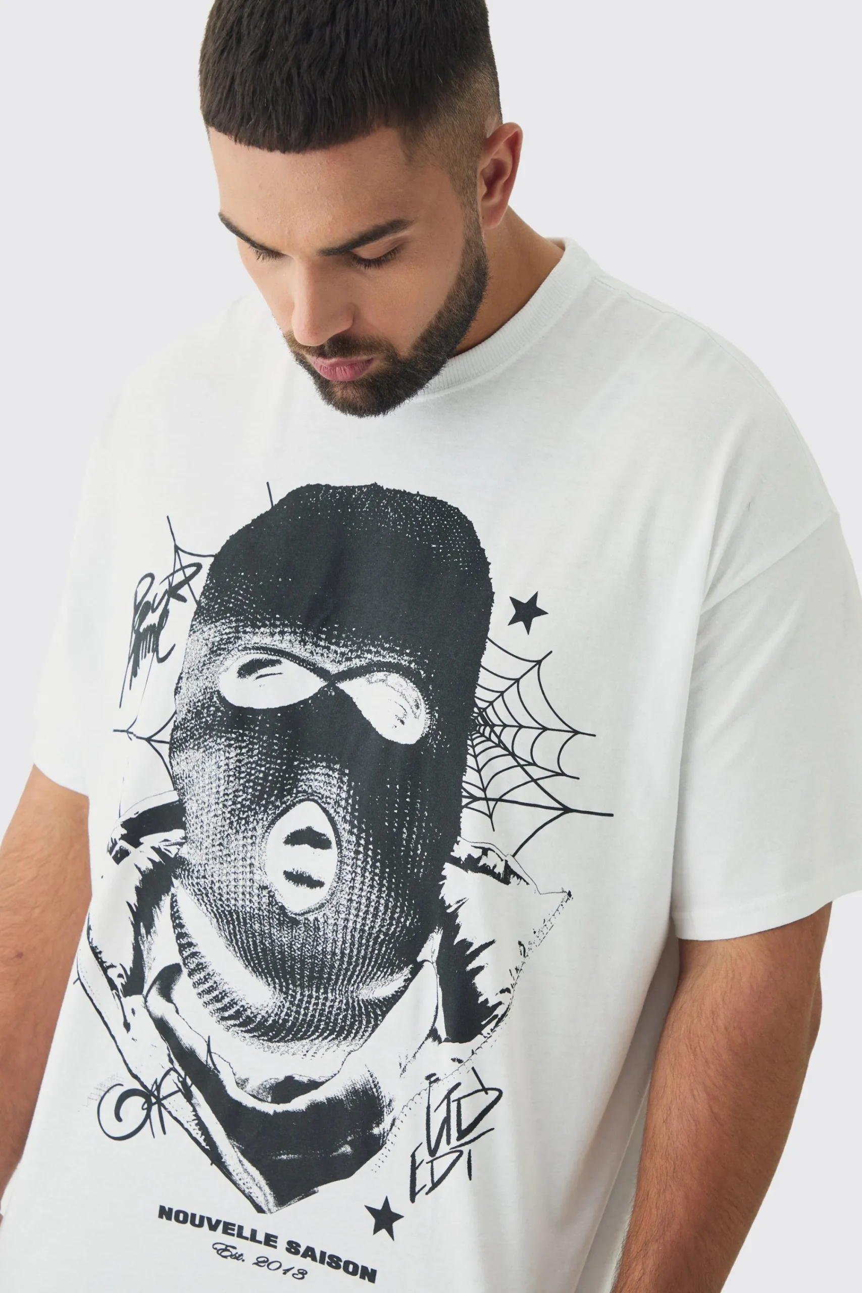 Plus Spiderweb Balaclava Graphic T-Shirt | UK^boohooMAN Hot