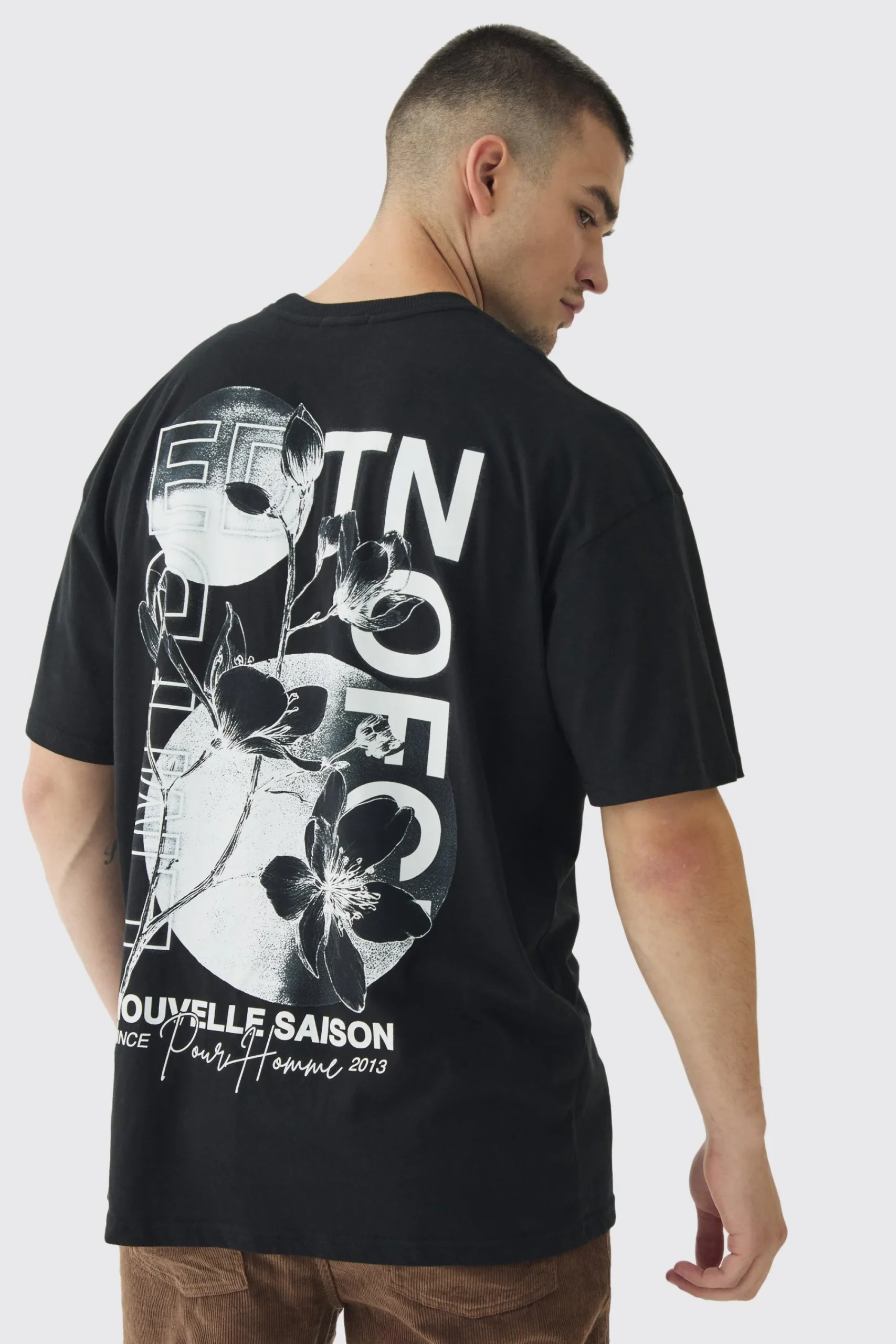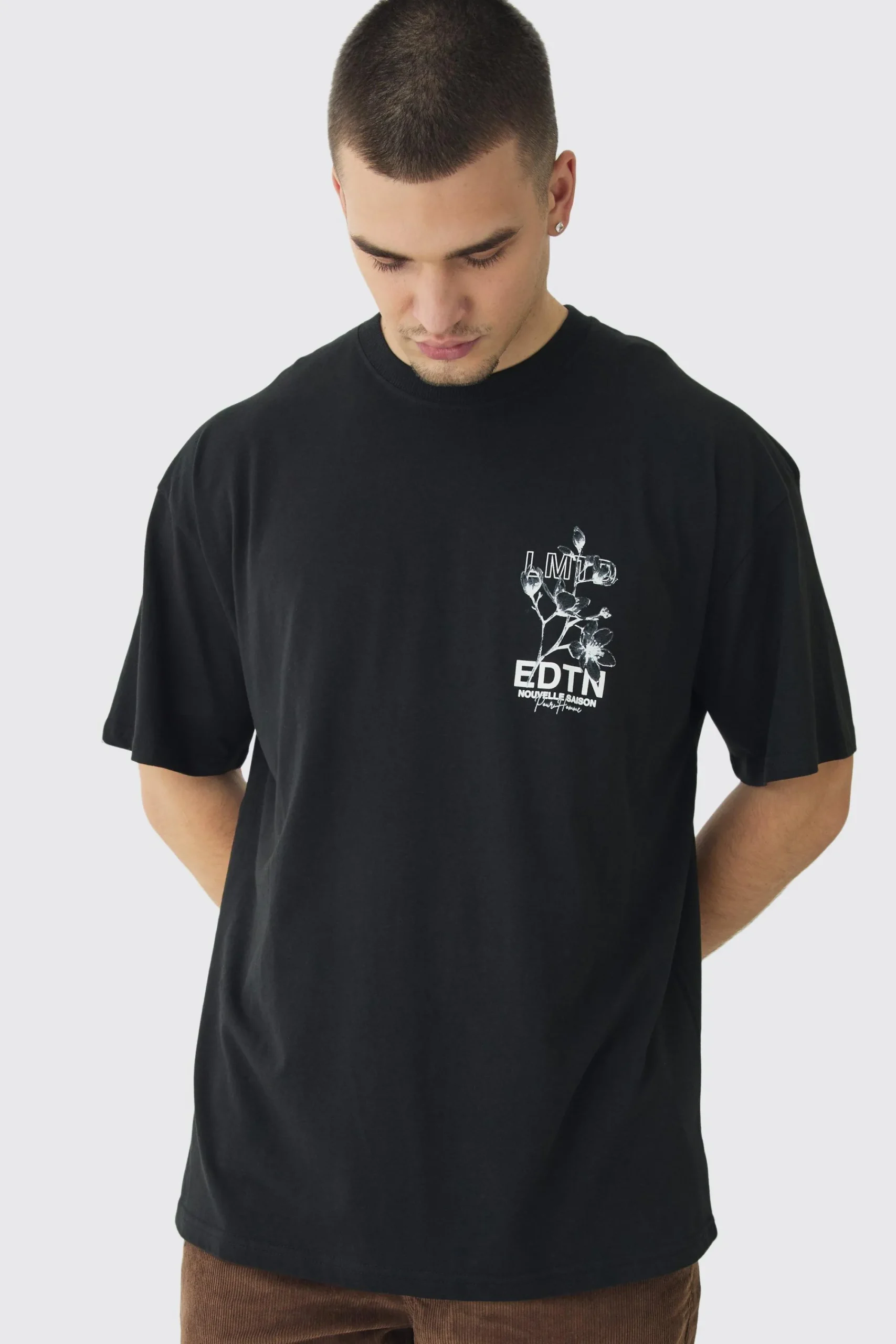Tall EDTN Floral Graphic Back Oversized Printed T-Shirt | UK^boohooMAN Online