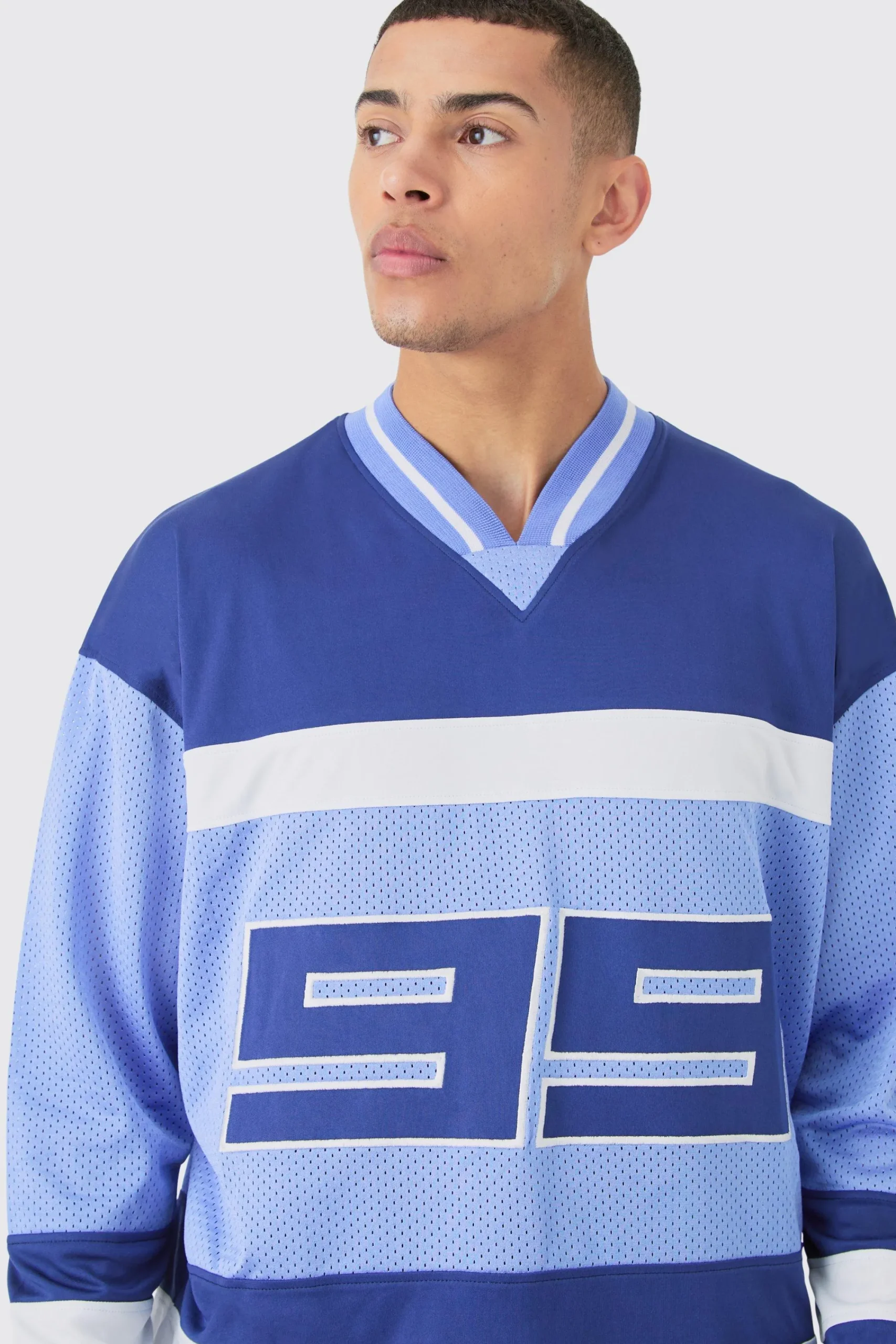 100% POLYESTER. Model is 6’1″ and wears a size M